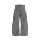 Acid Wash Beaded Studded Flared Baggy Jeans | Inflation Streetwear