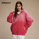 Distressed Washed Rhinestone Zip Up Hoodies | Inflation Streetwear