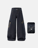 Rhinestone Lightning Baggy Barrel Jeans | Inflation Streetwear