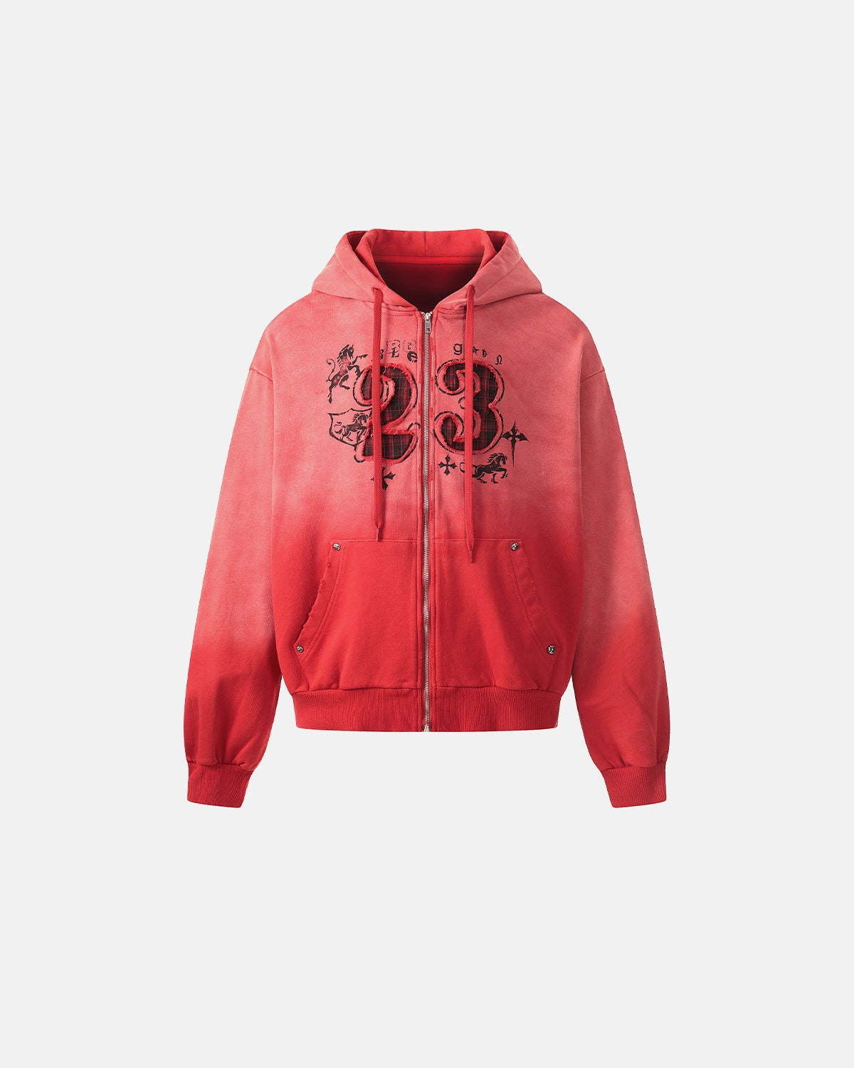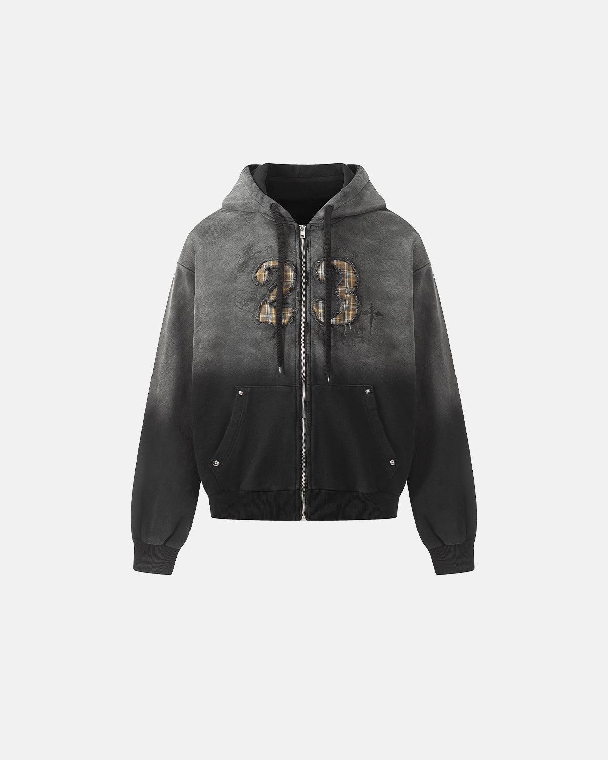 "23" Washed Appliqué Embroidery Zip Up Hoodies | Inflation Streetwear