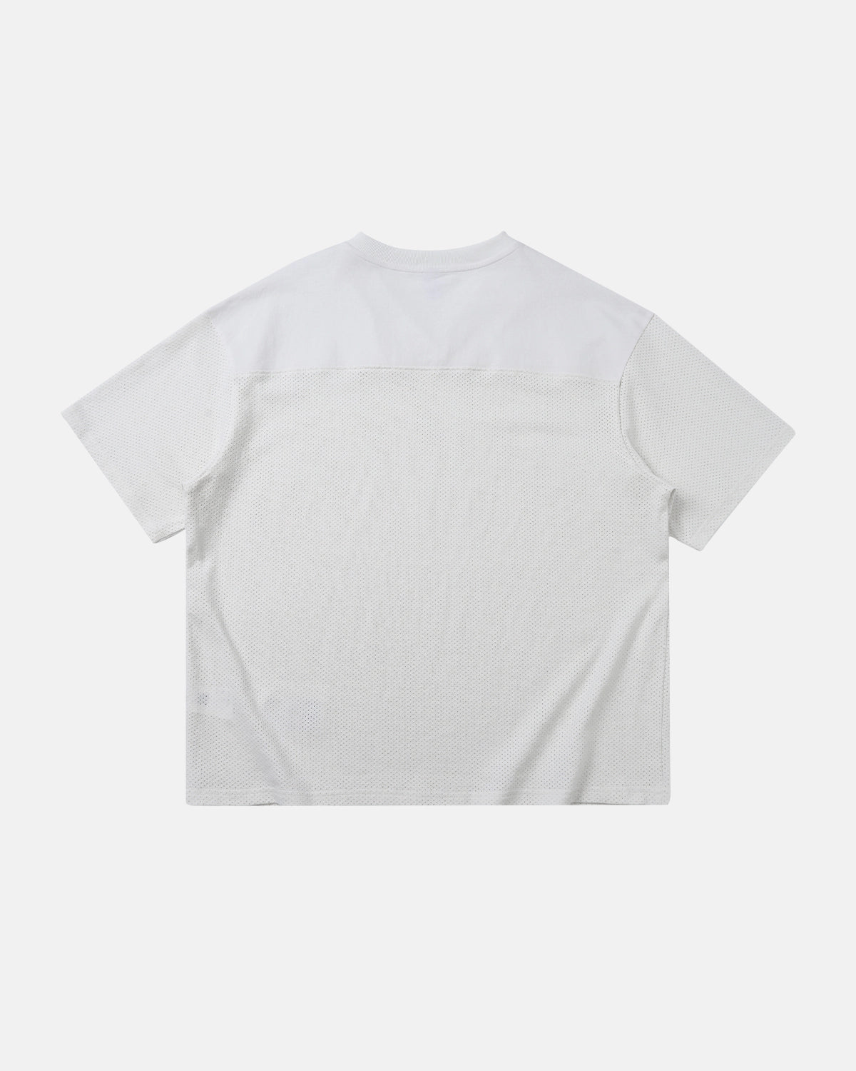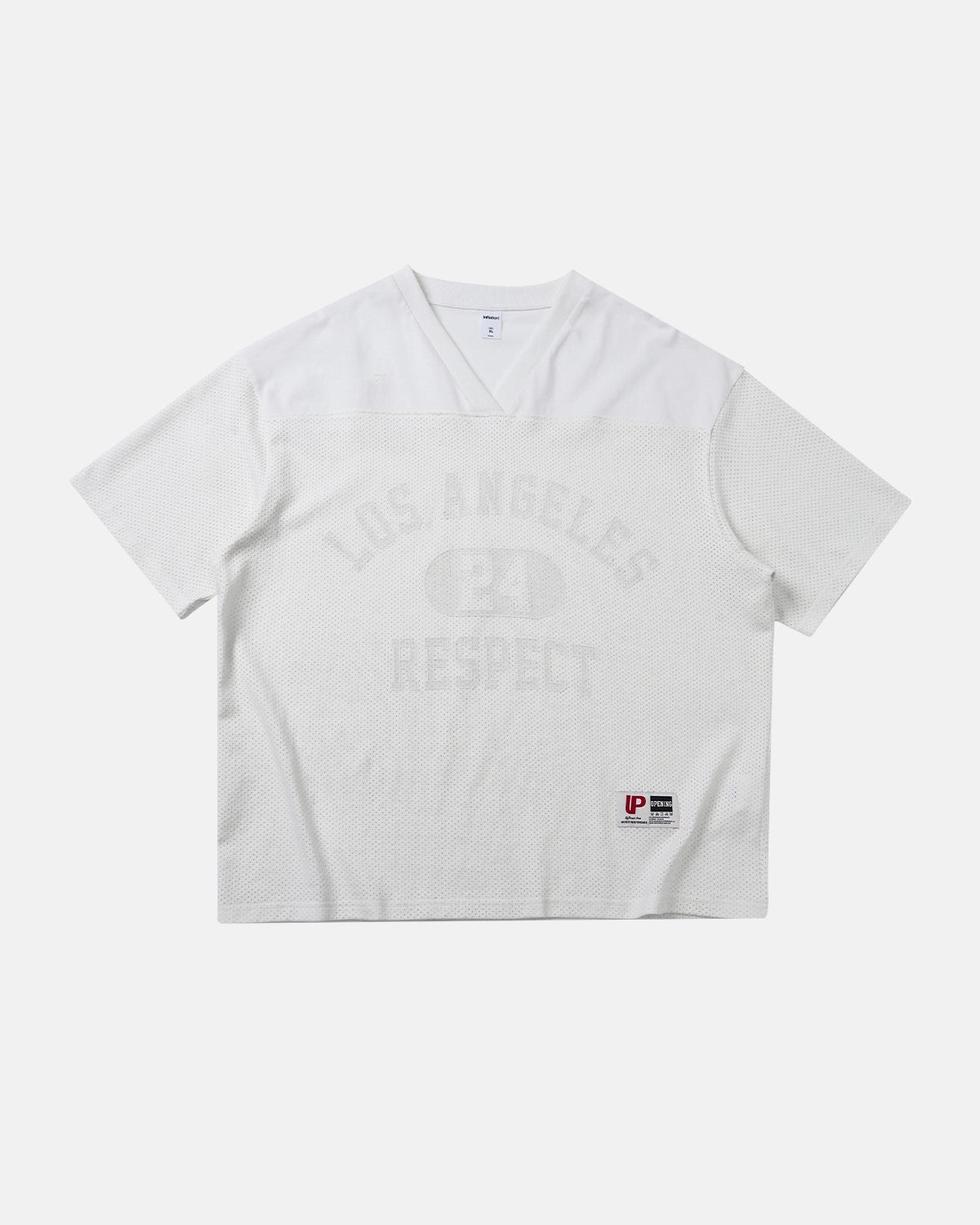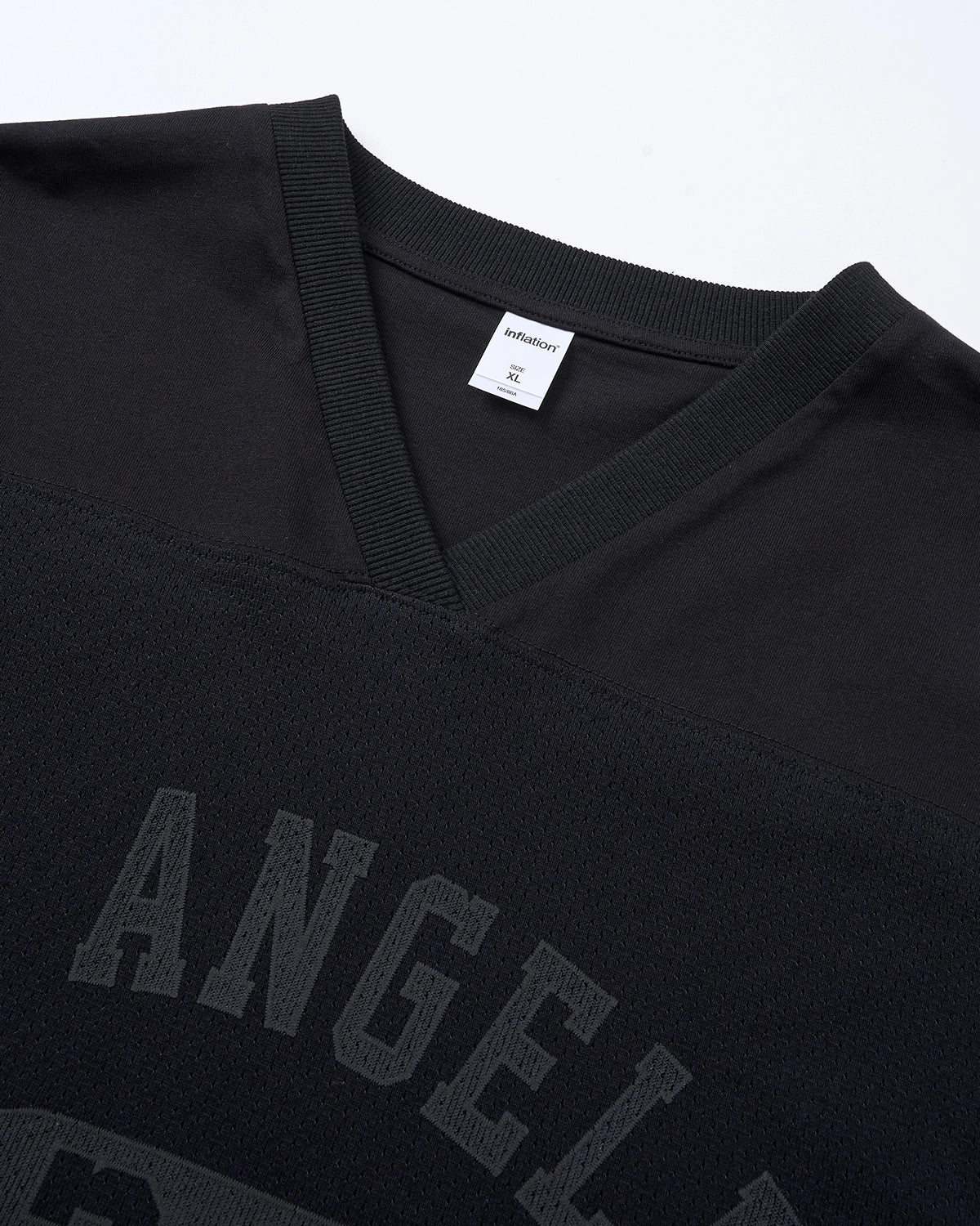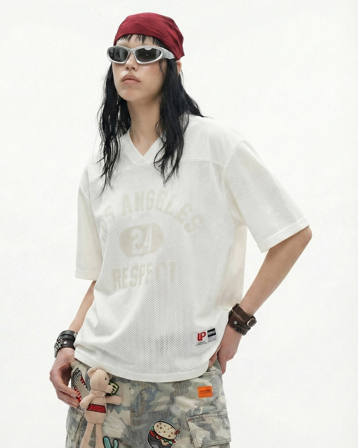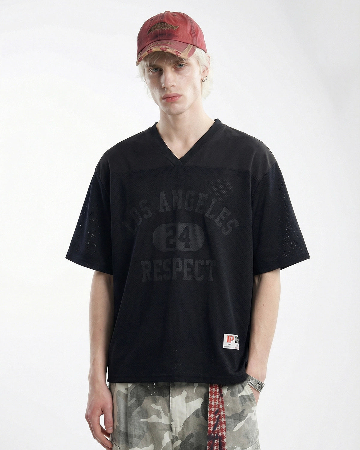 Made from breathable mesh fabric, the jersey delivers lightweight comfort and airflow for all-day wear. The V-neck construction and relaxed fit allow easy movement while maintaining a clean, sporty silhouette.