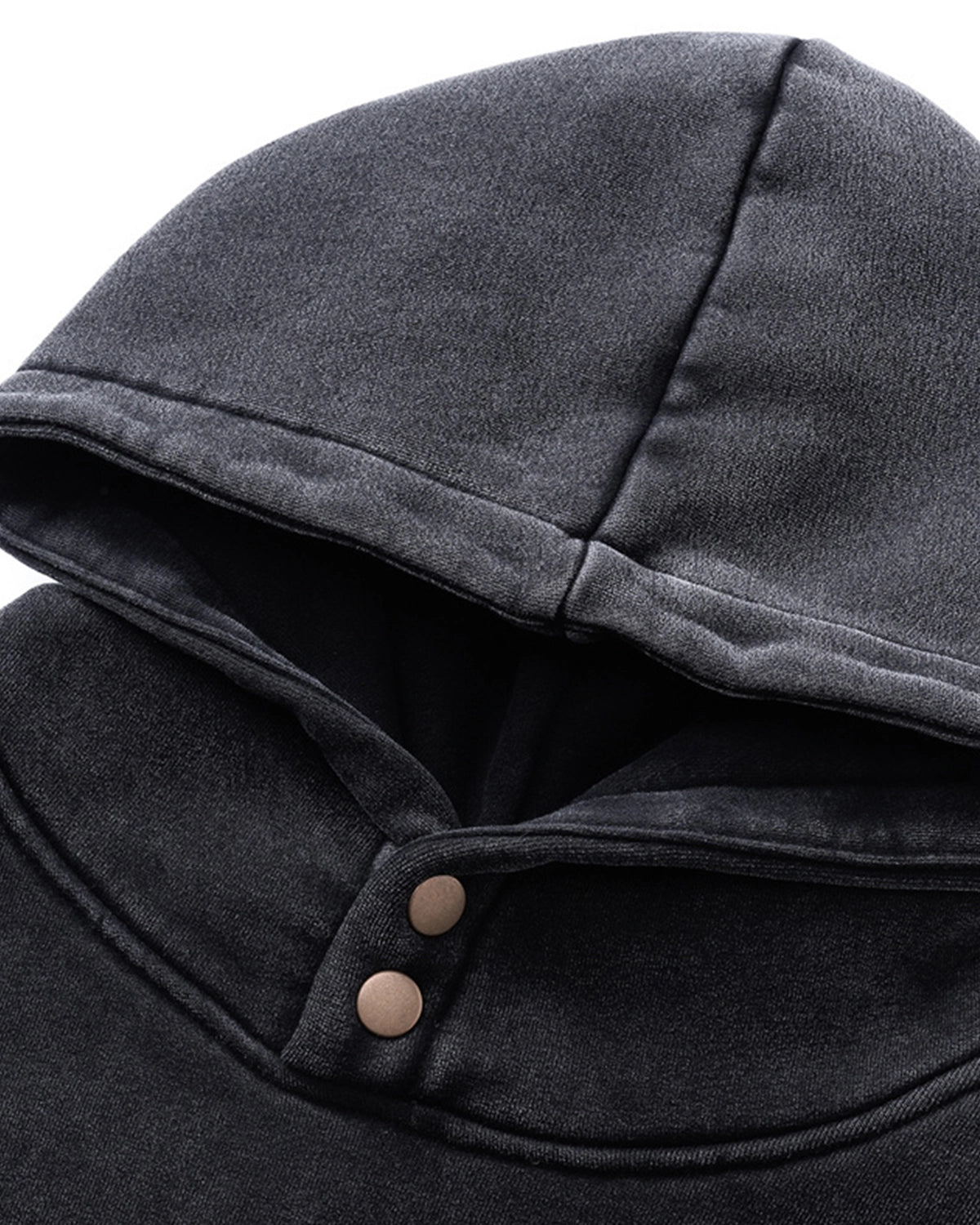 The snap button collar adds a customizable fit, offering versatility in styling. The fleece lining keeps you cozy and insulated, while the oversized fit gives you a relaxed, modern streetwear vibe. Perfect for layering over tees or wearing solo, this hoodie effortlessly blends comfort, warmth, and contemporary street fashion.