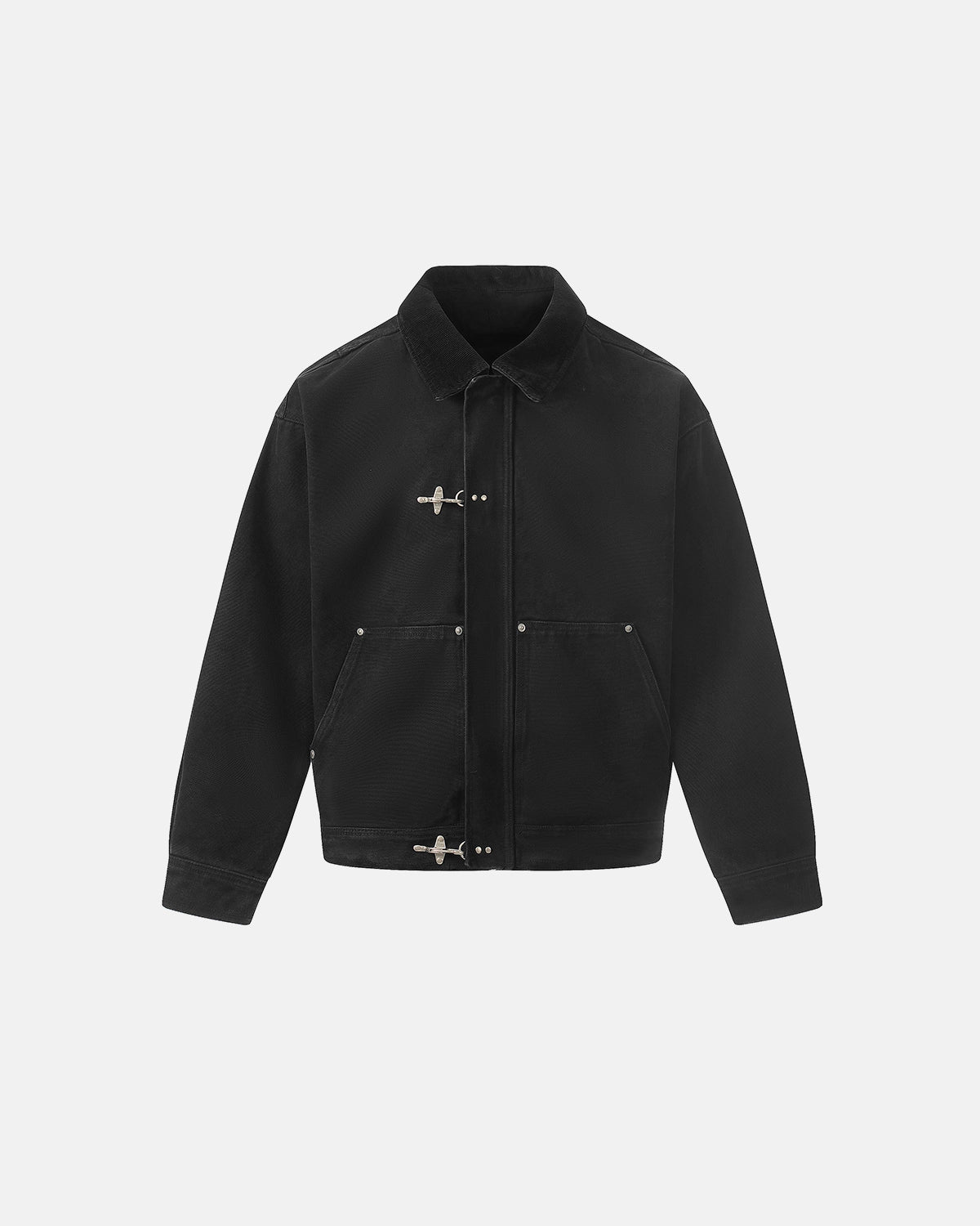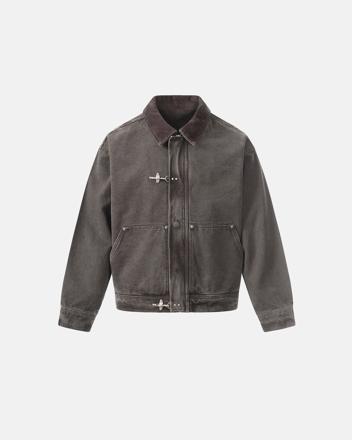 Acid Wash Metal Clasp Cargo Jacket | Inflation Streetwear
