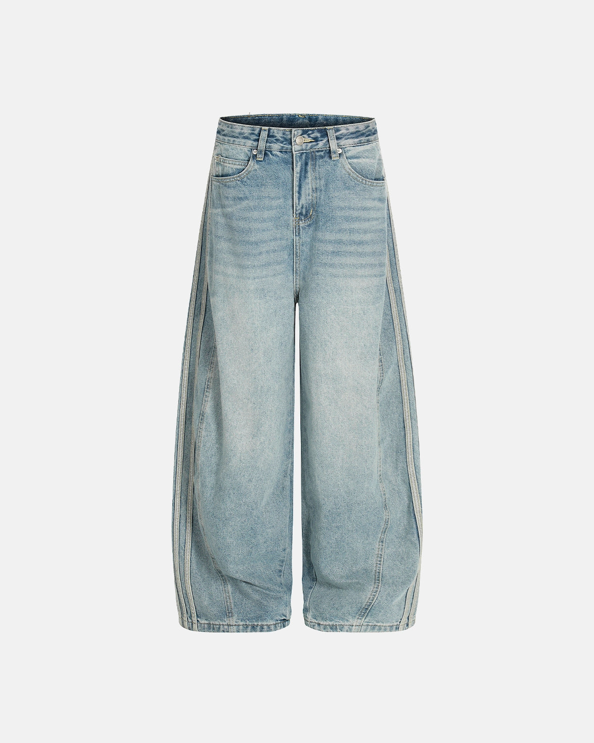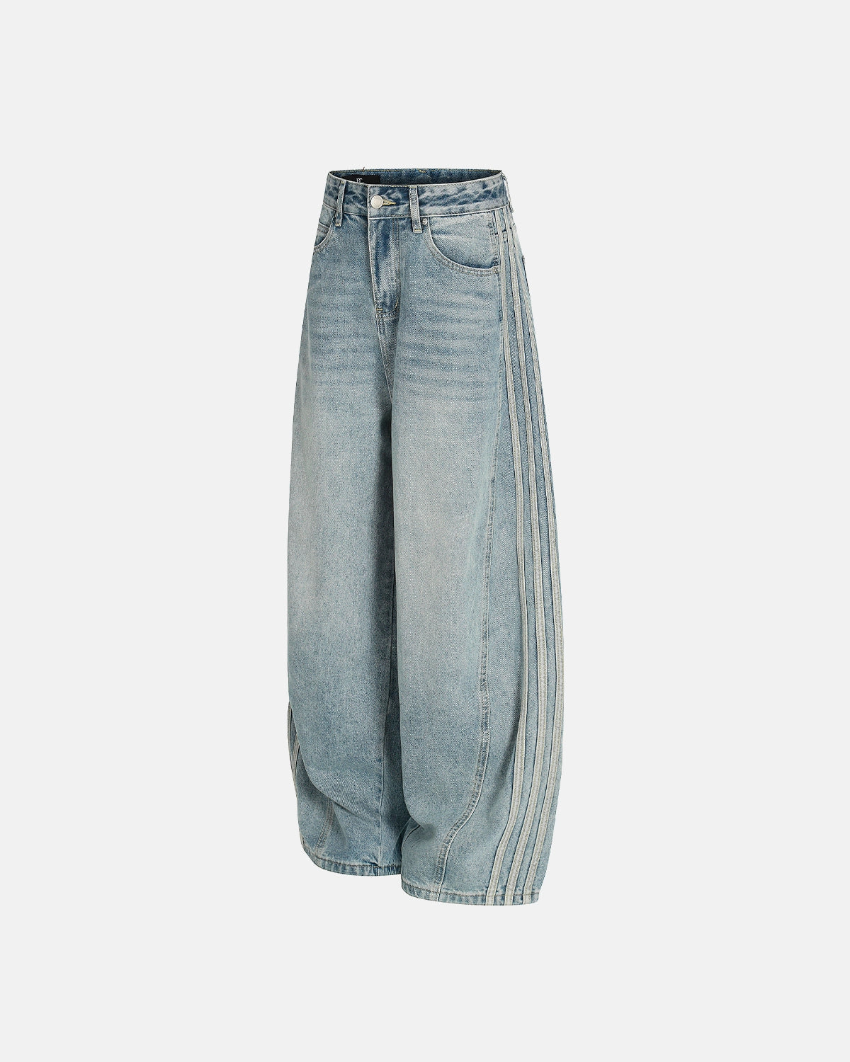 Acid Wash Striped Side Baggy Jeans | Inflation Streetwear