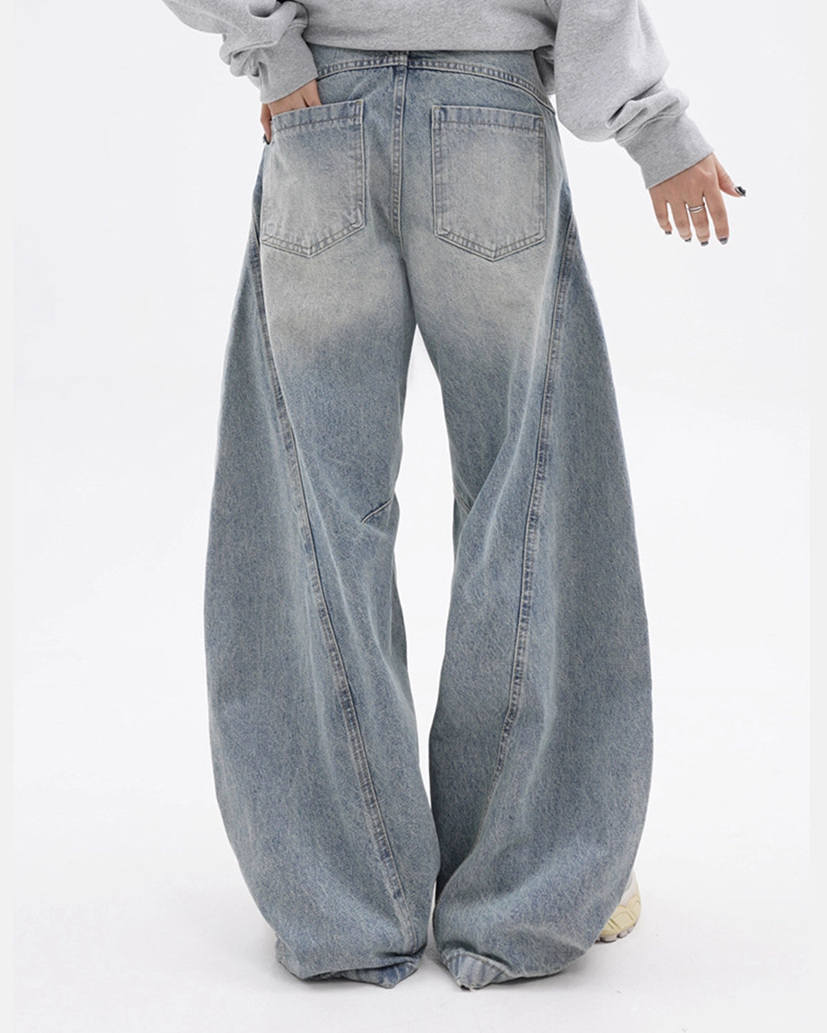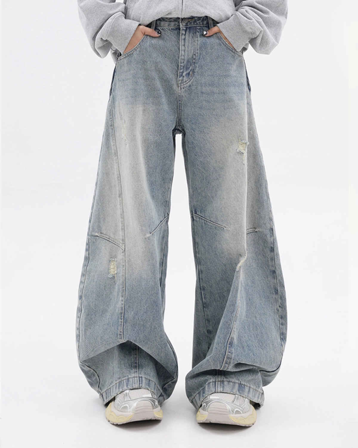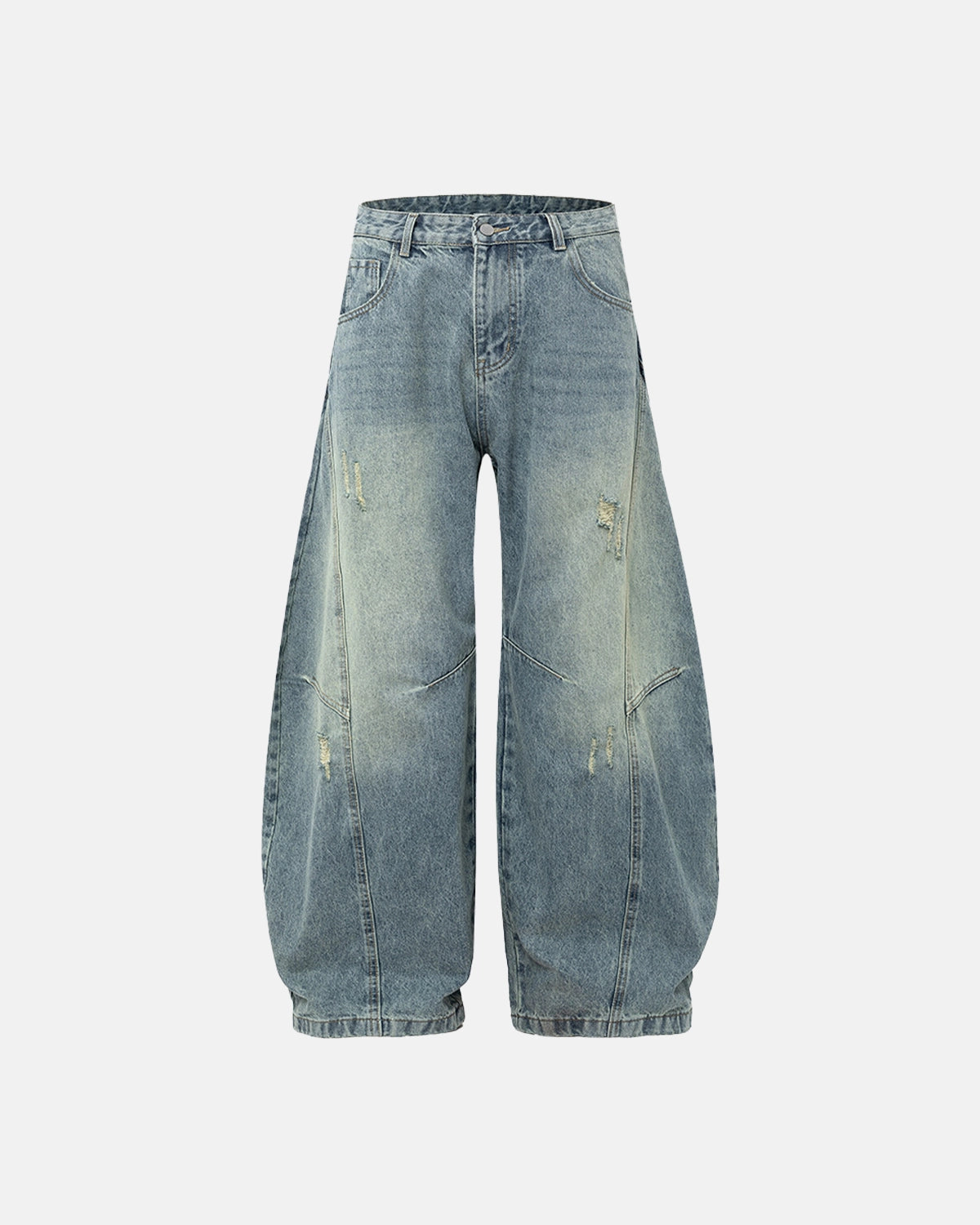 Acid Washed Distressed Barrel Jeans | Inflation Streetwear