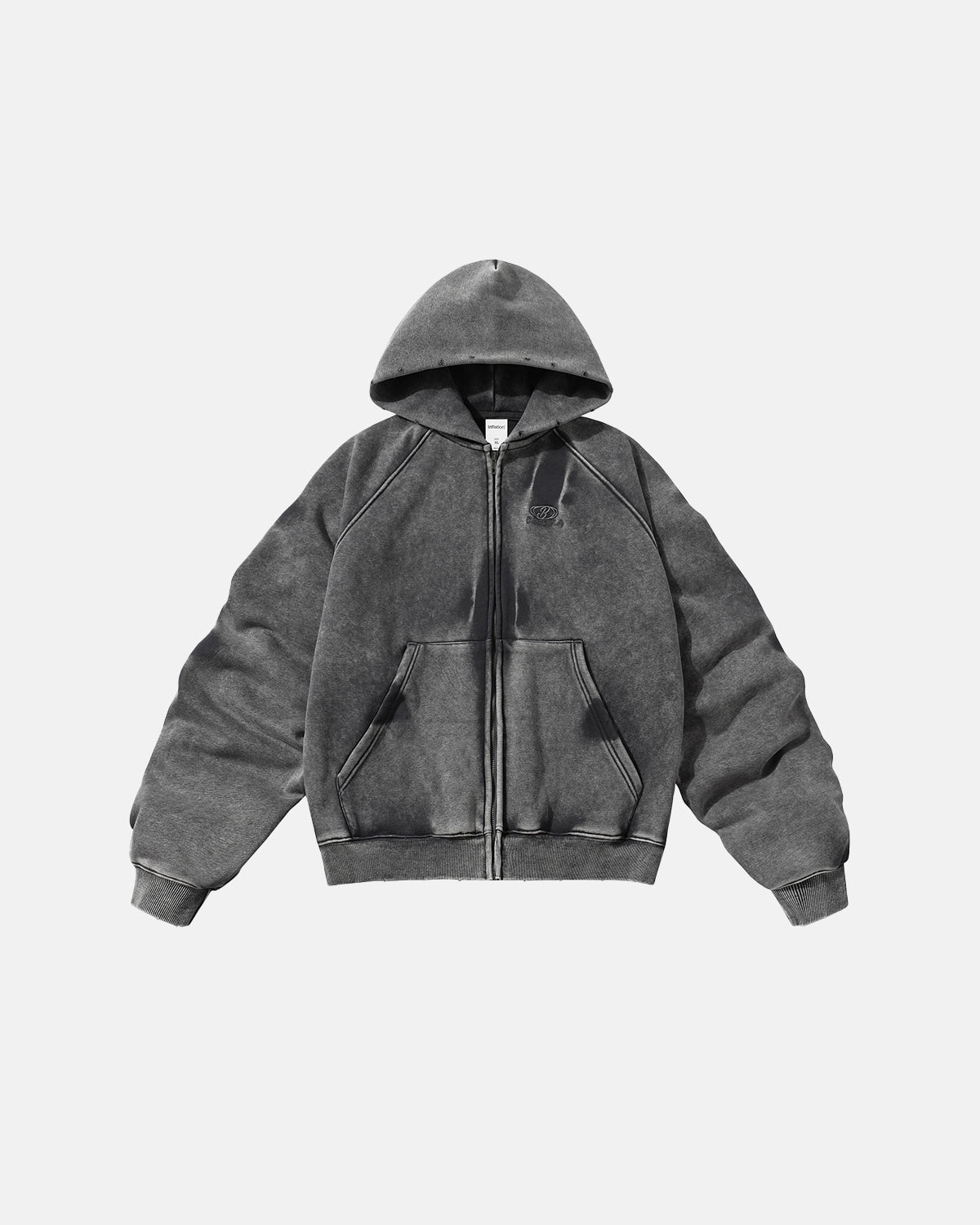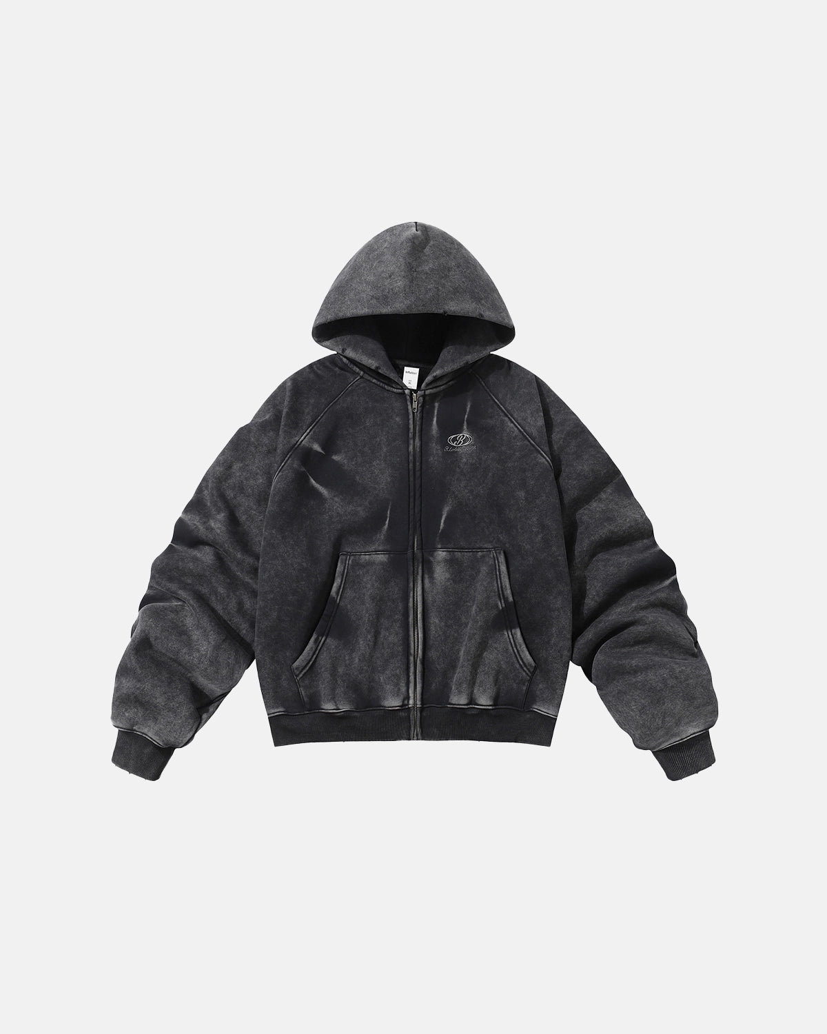 Acid Washed Embroidery Zip Up Hoodies | Inflation Streetwear