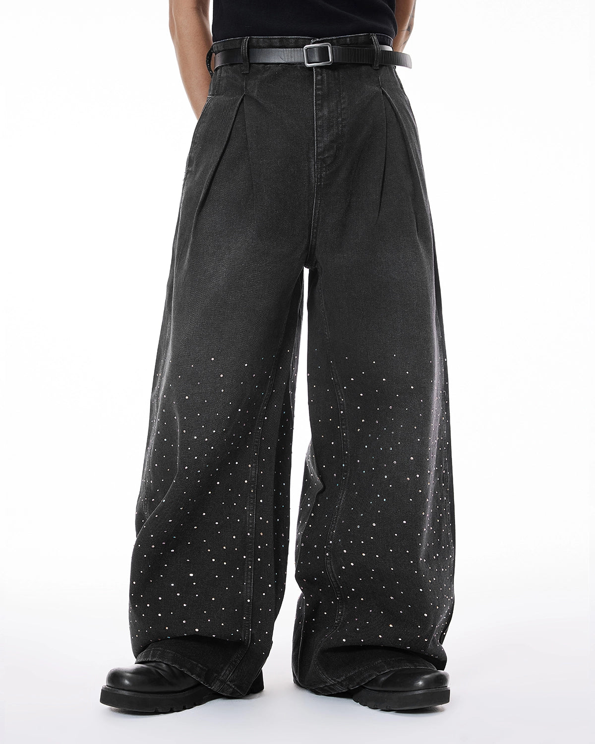 Acid Washed Rhinestone Baggy Jeans | Inflation Streetwear