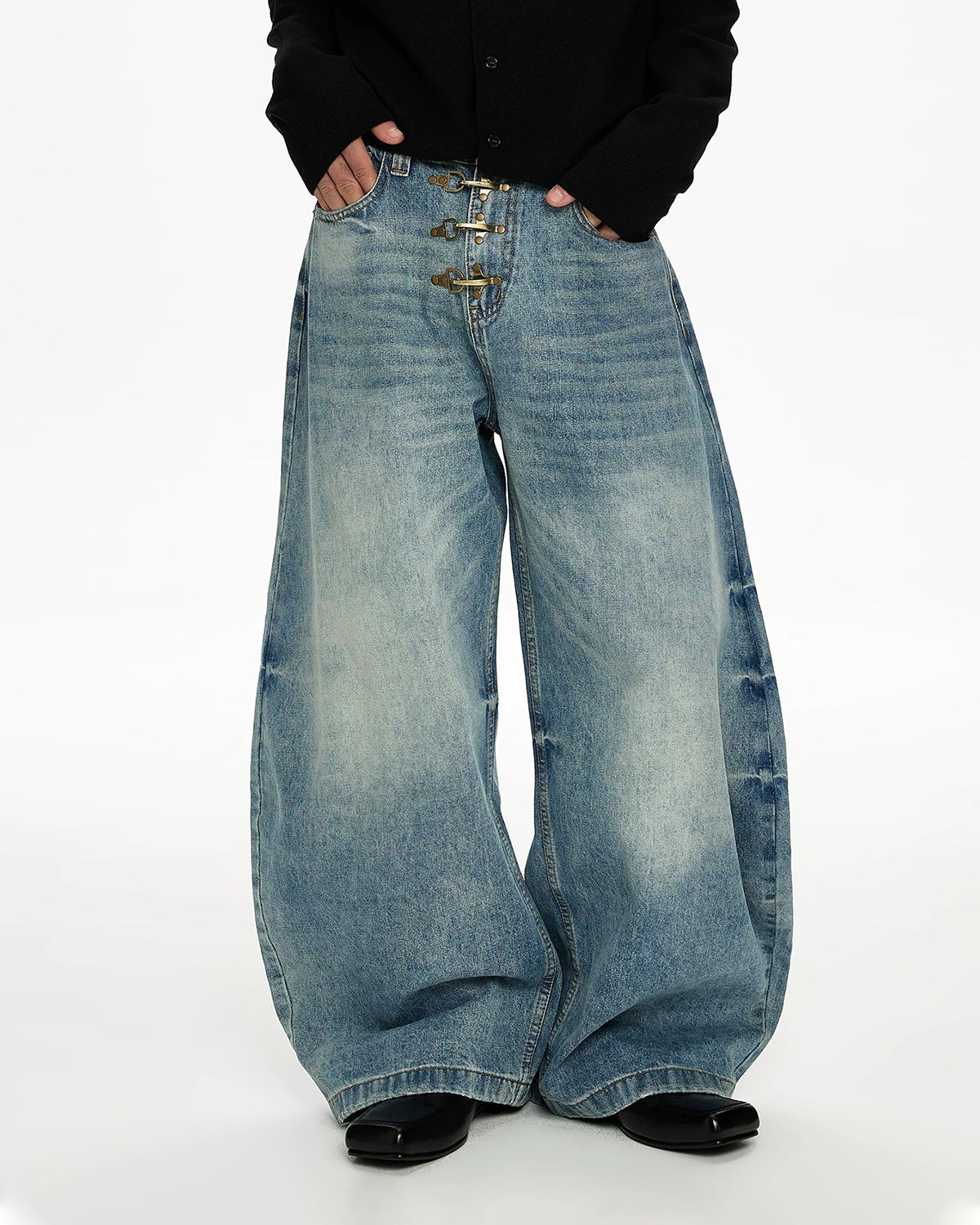 Acid Washed Whisker Clasp Barrel Jeans | Inflation Streetwear