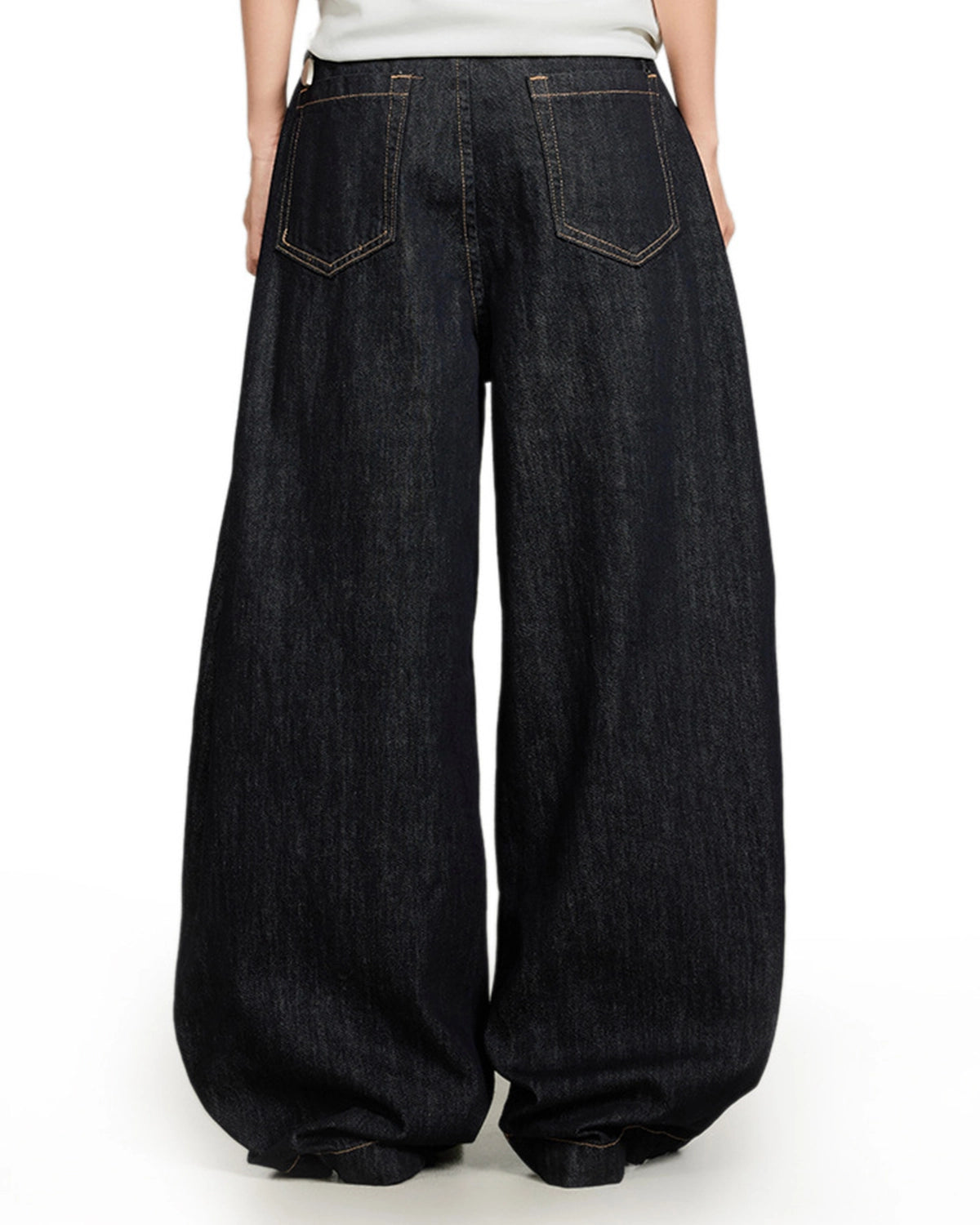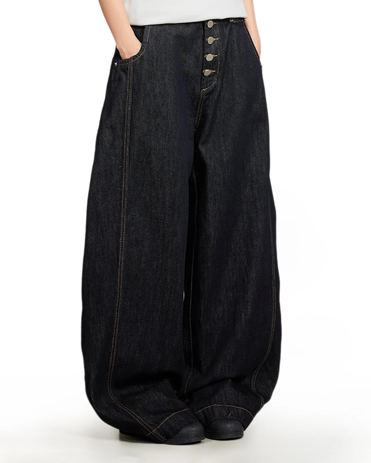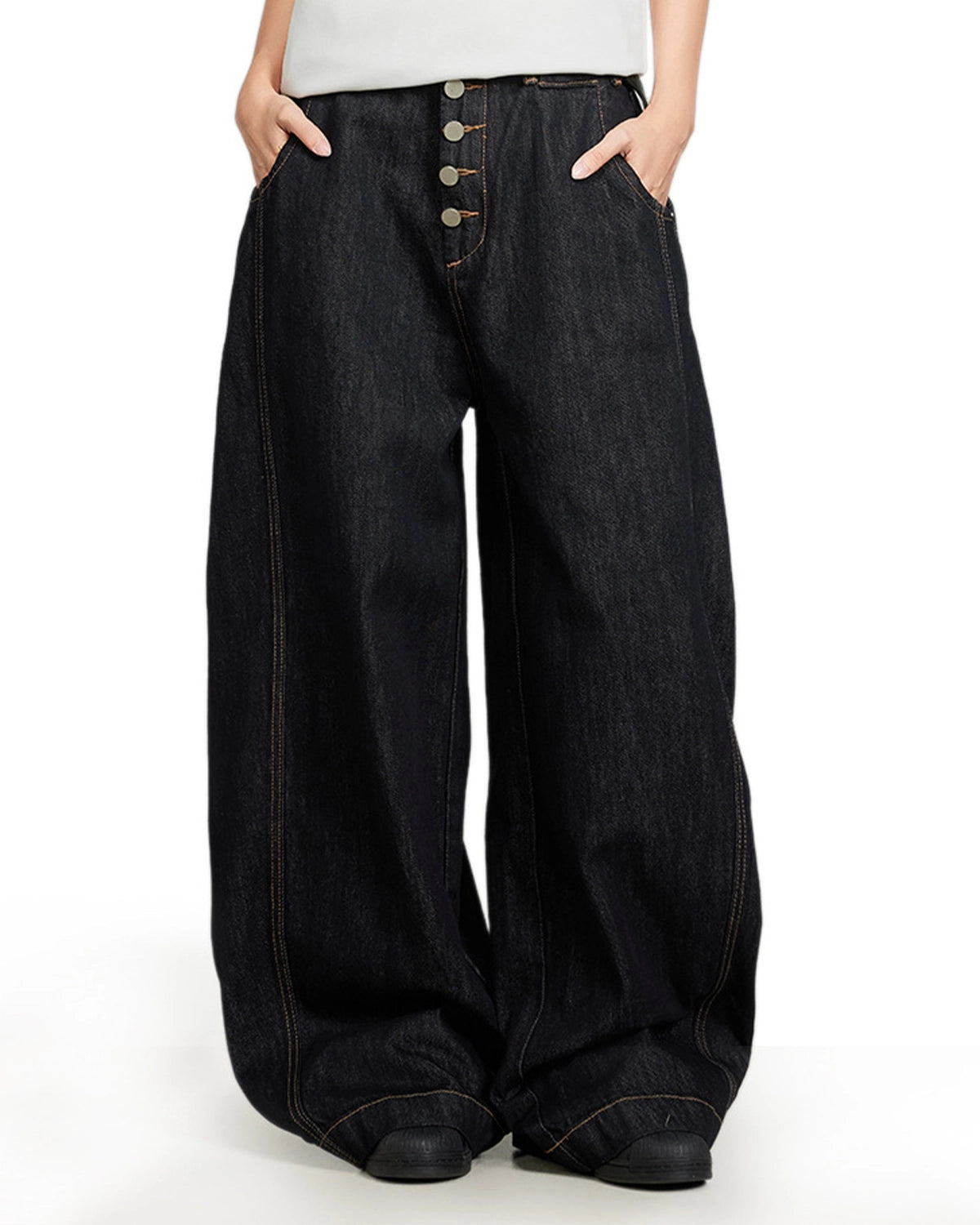 Black Buttons Up Barrel Baggy Jeans | Inflation Streetwear