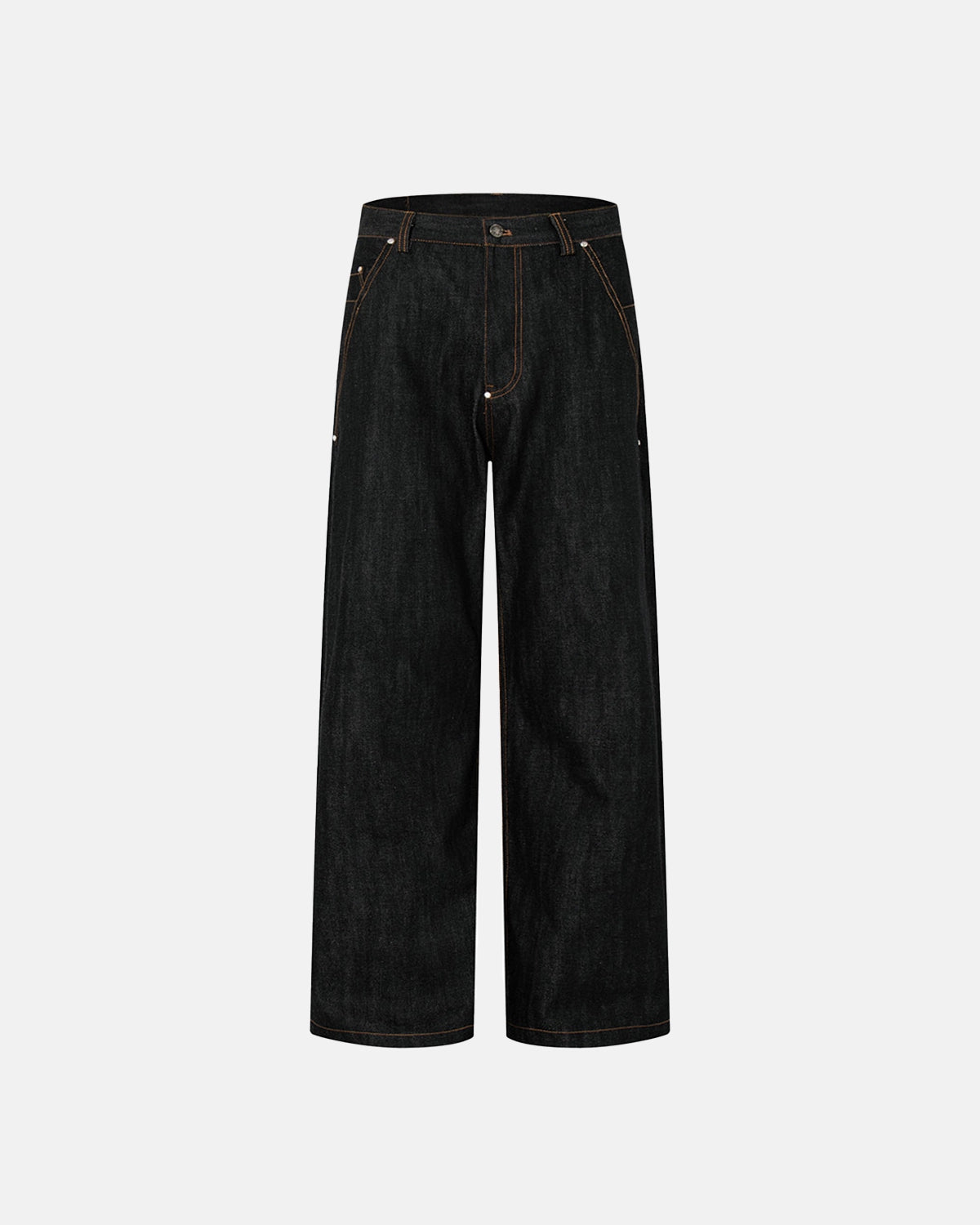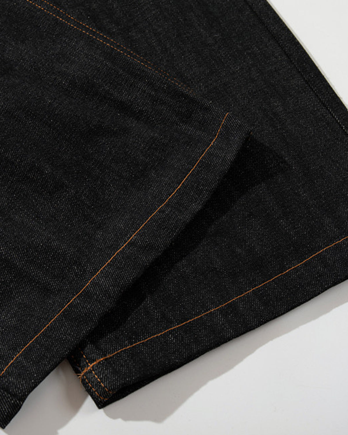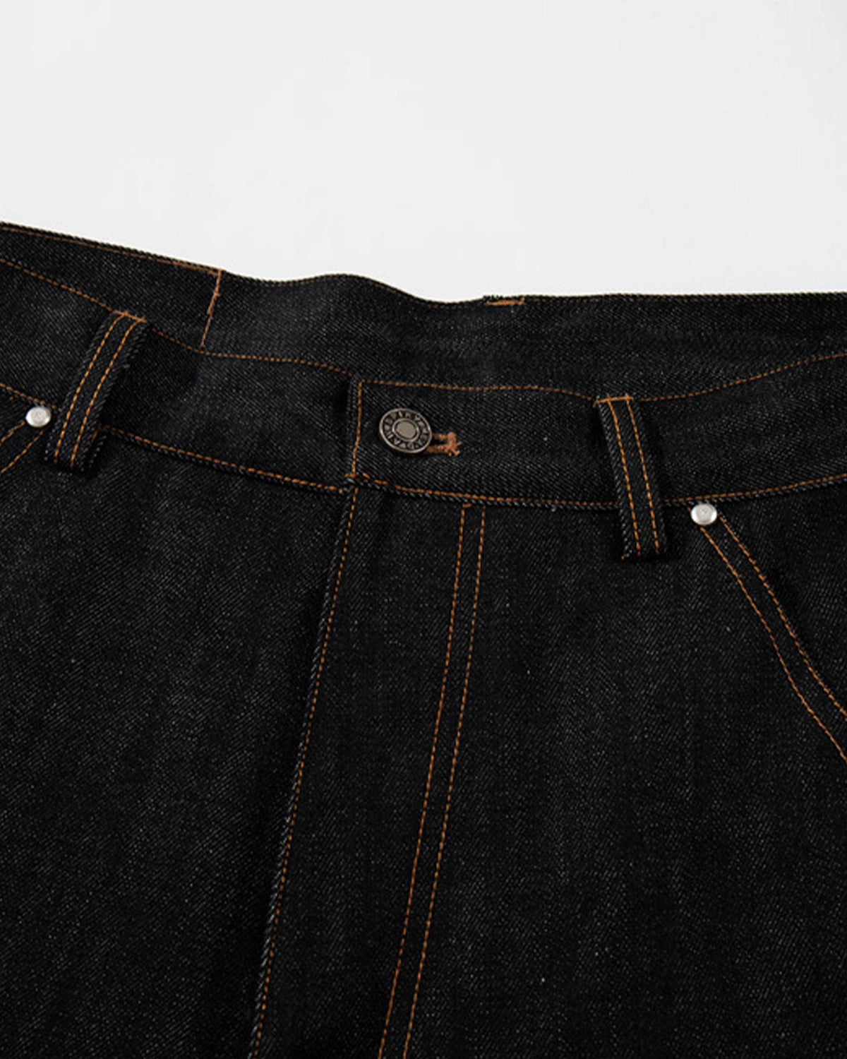 Black Raw Straight Leg Denim Jeans | Inflation Streetwear