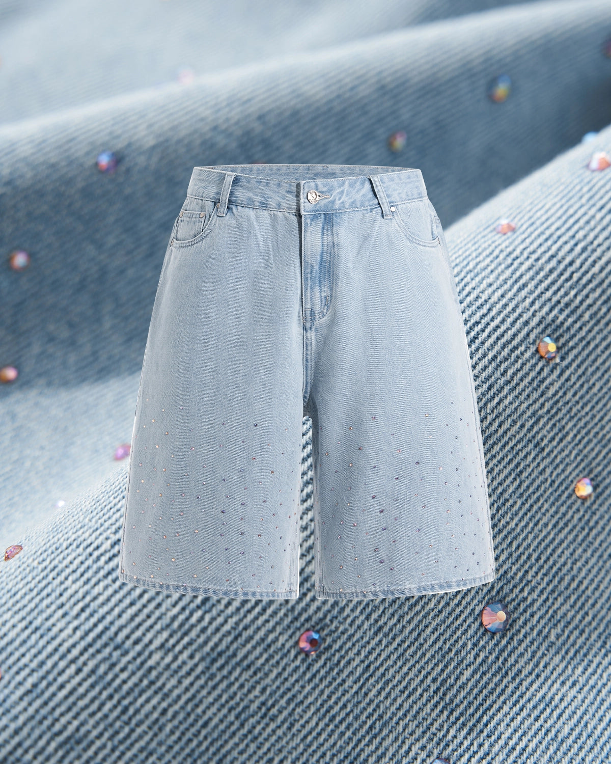 Blue Rhinestone Denim Shorts | Inflation Streetwear
