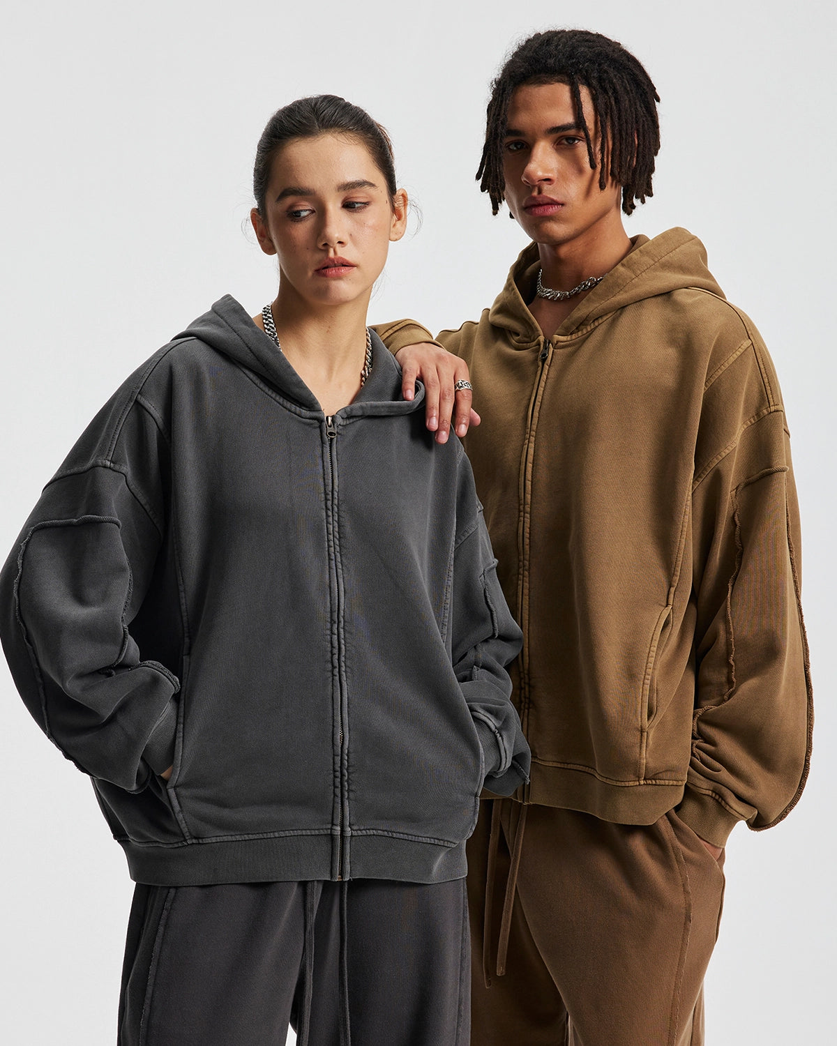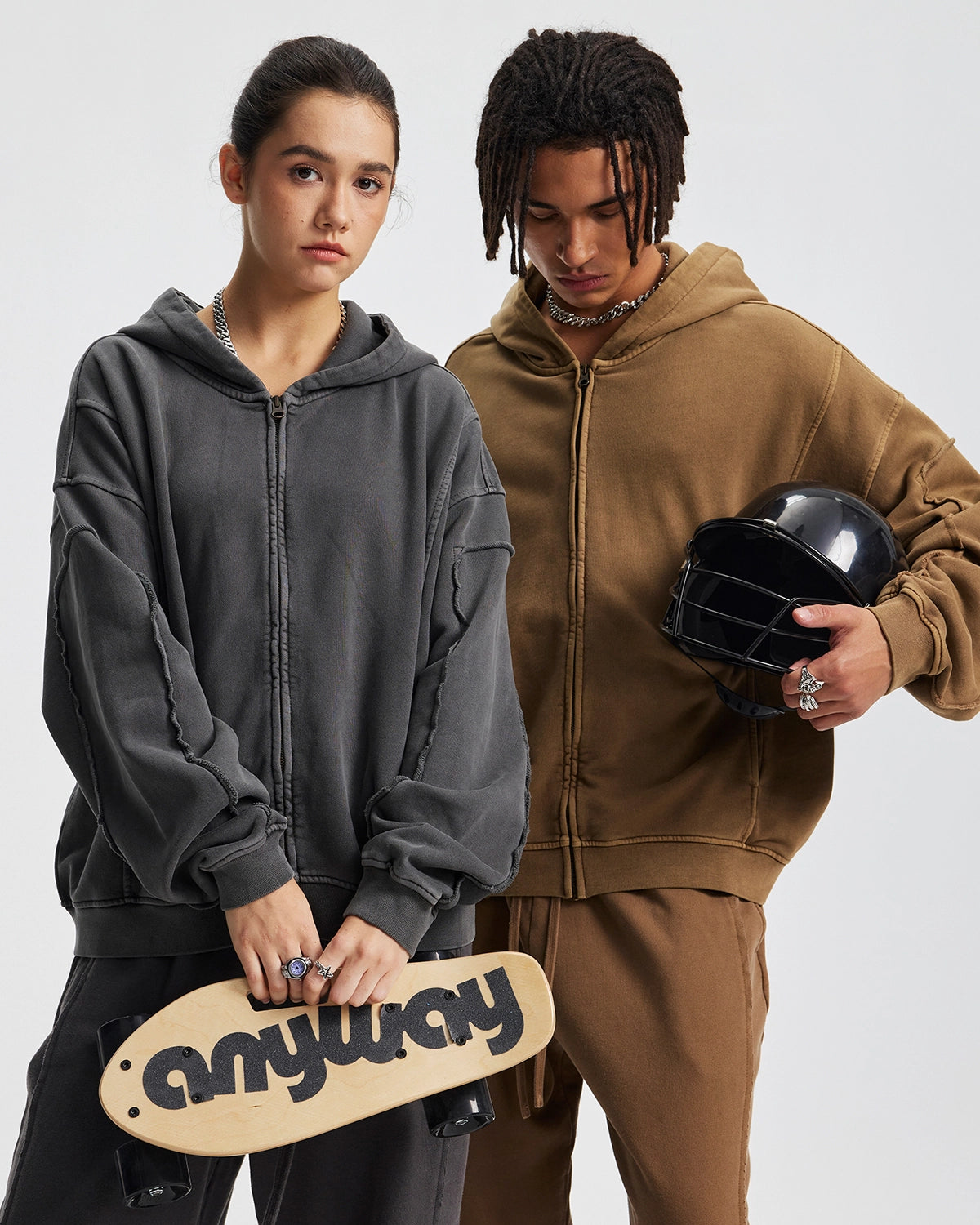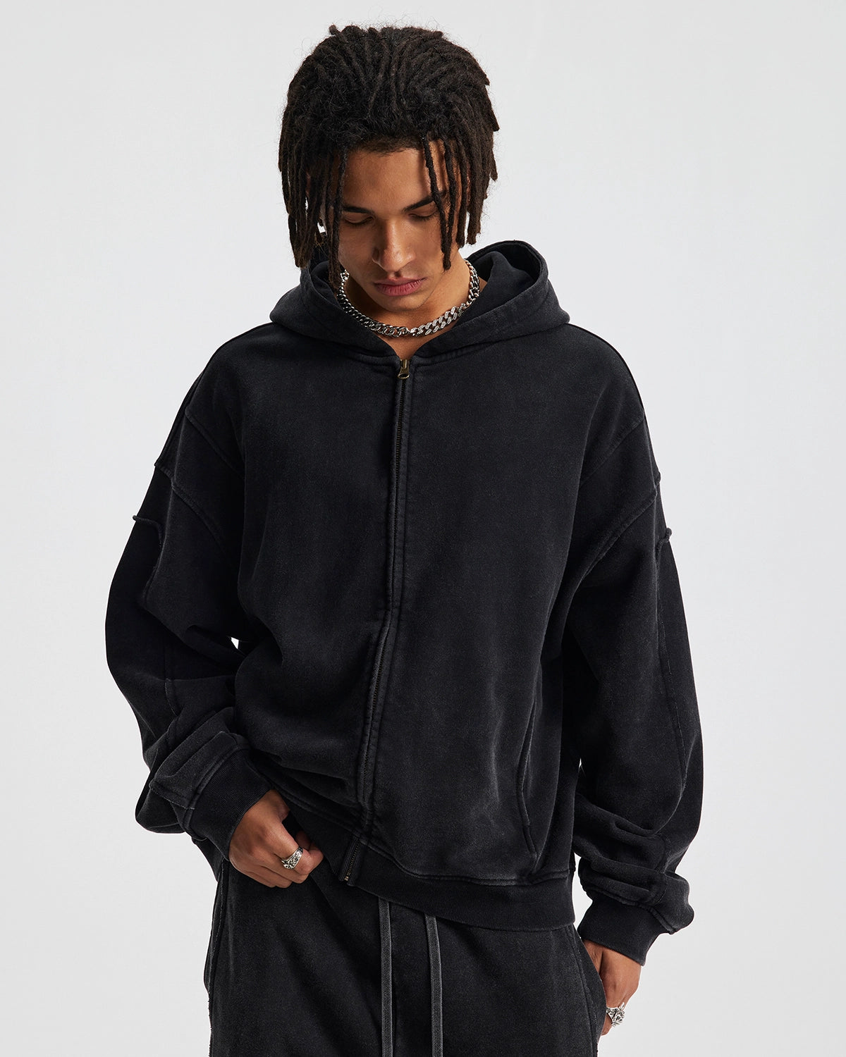 Acid Wash Stitching Zip Up Hoodies | Inflation Streetwear