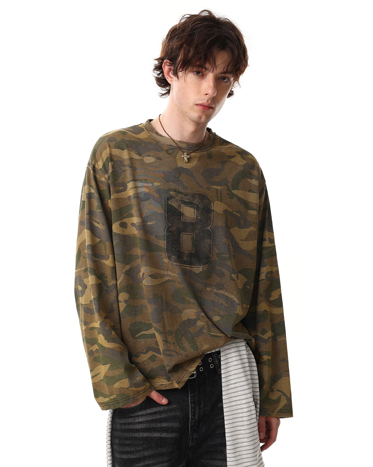 Distressed Camo Long Sleeve T-Shirt | Inflation Streetwear