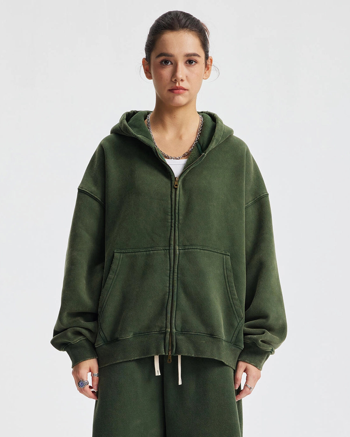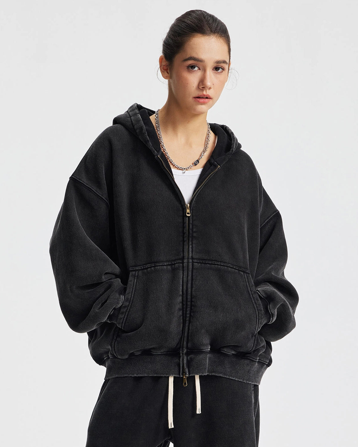 Boxy Fit Acid Washed Fleece Zip Up Hoodies | Inflation Streetwear