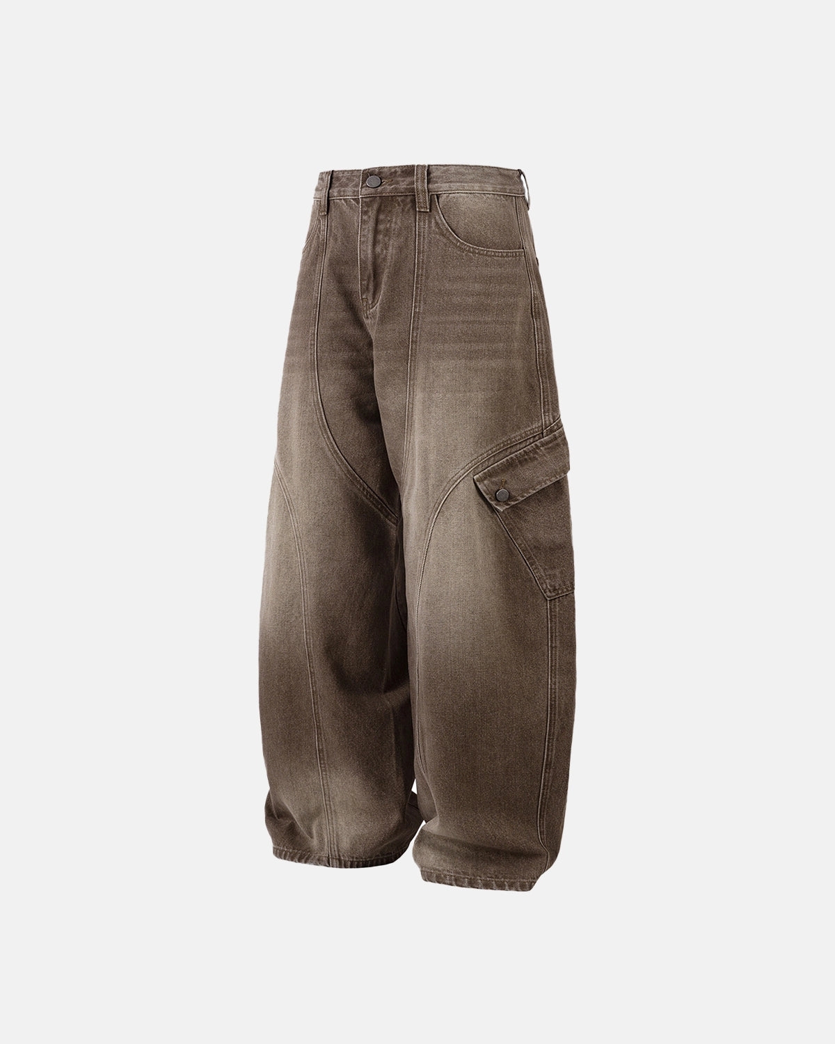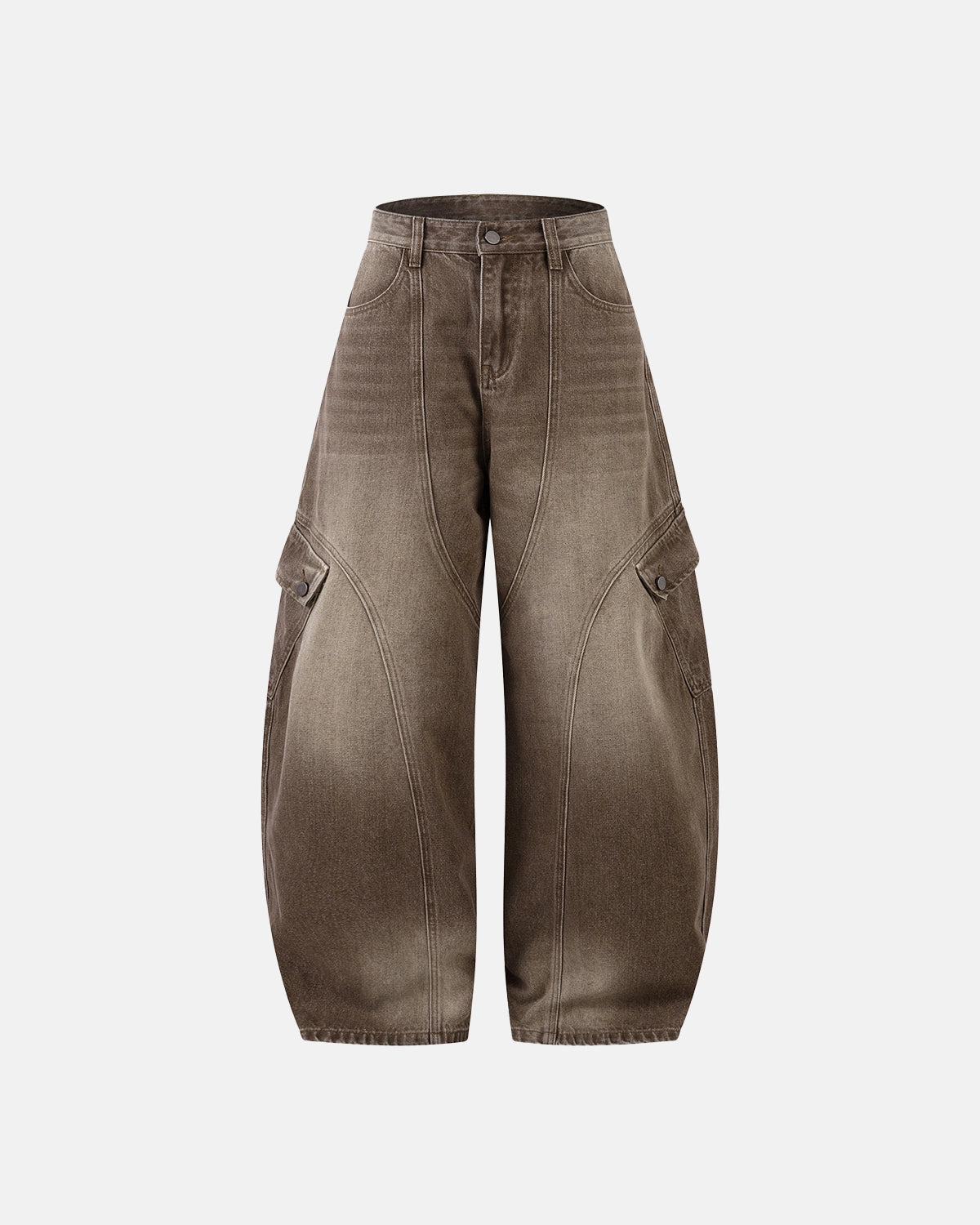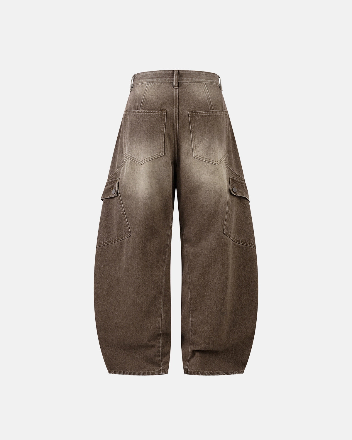 Brown Acid Wash Barrel Jeans | Inflation Streetwear