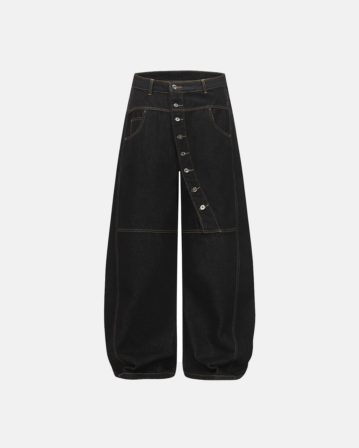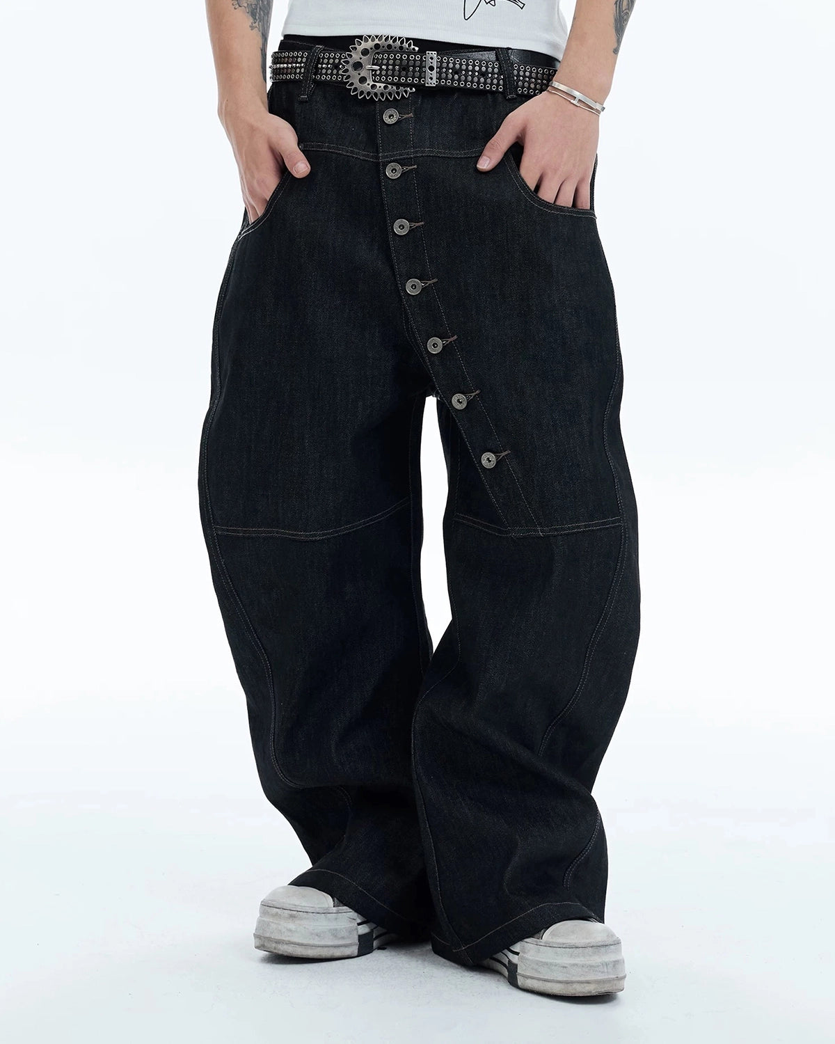 Button Detail Raw Baggy Jeans | Inflation Streetwear