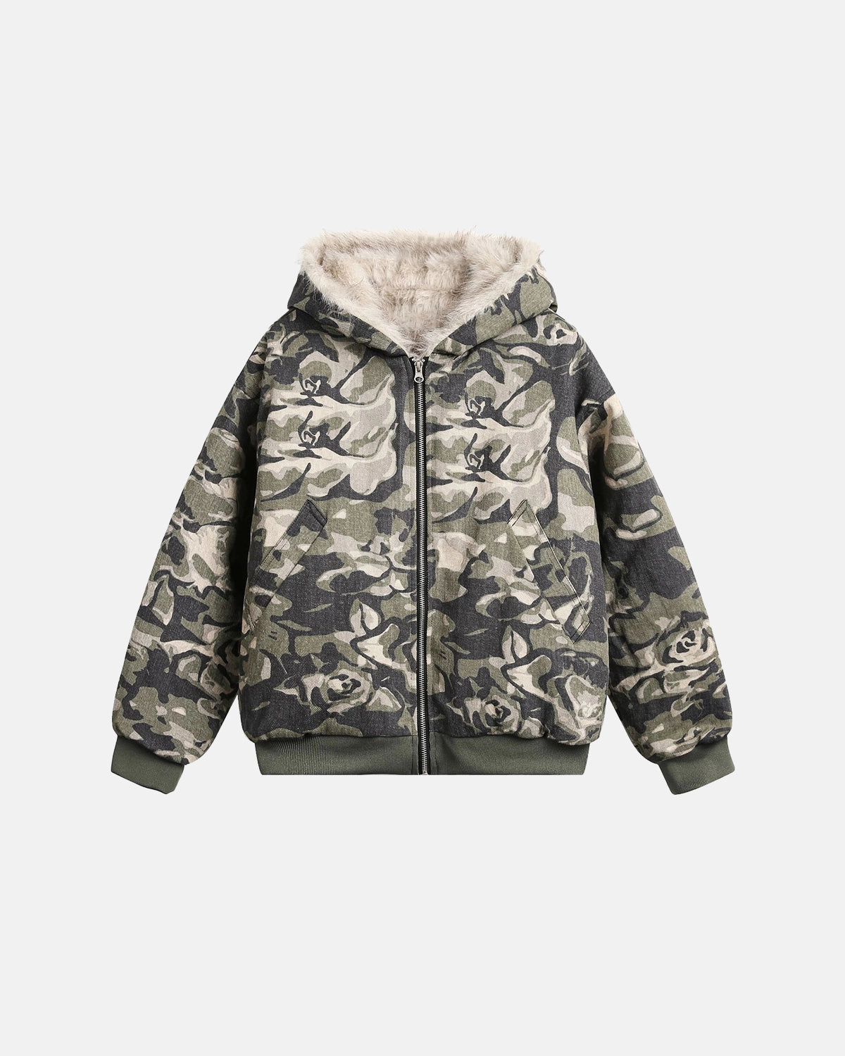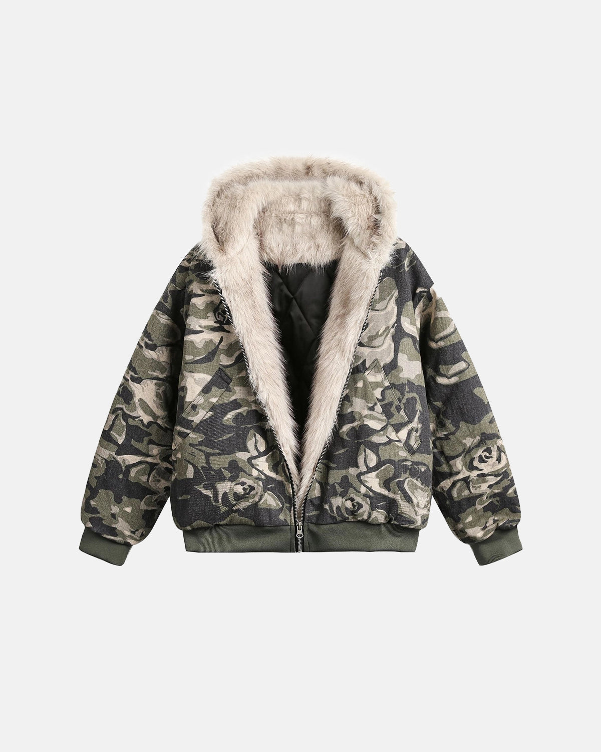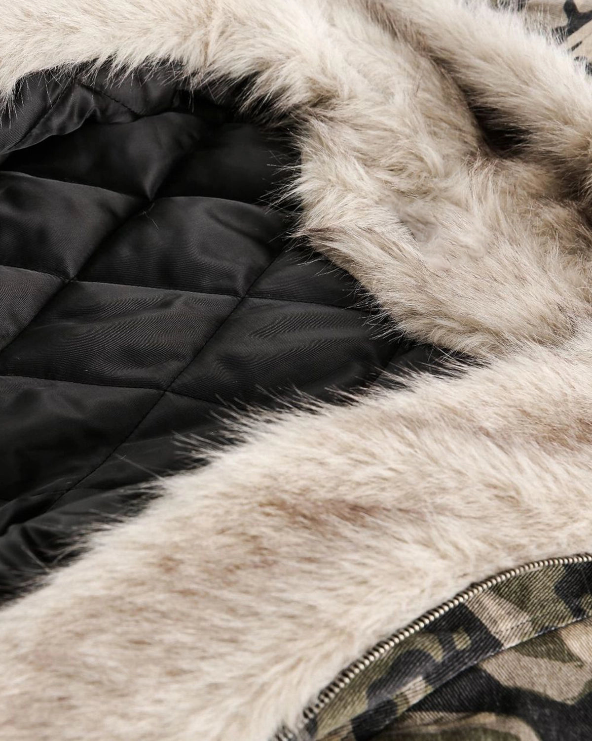 Camo Faux Fur Padded Hooded Jacket | INFLATION Streetwear