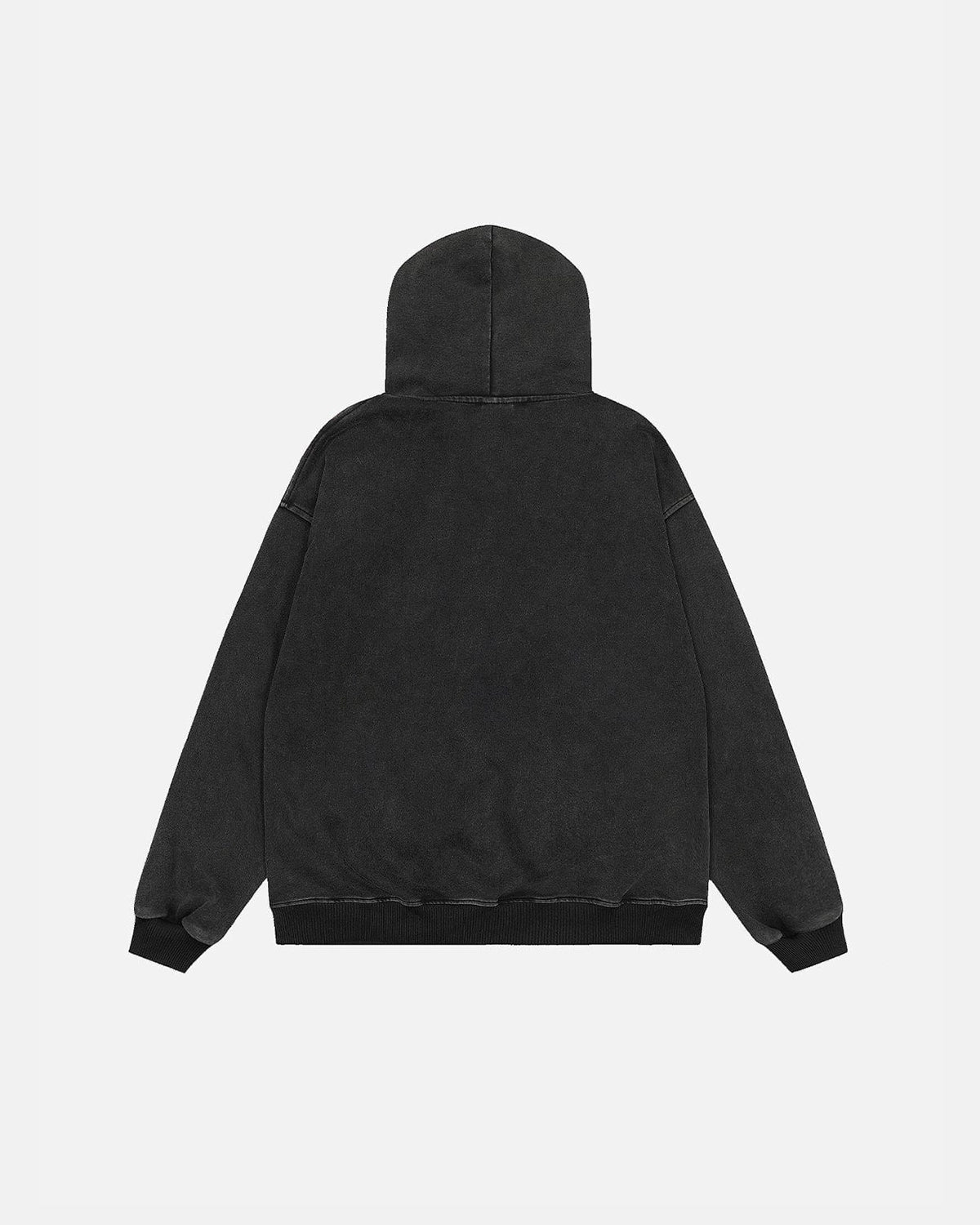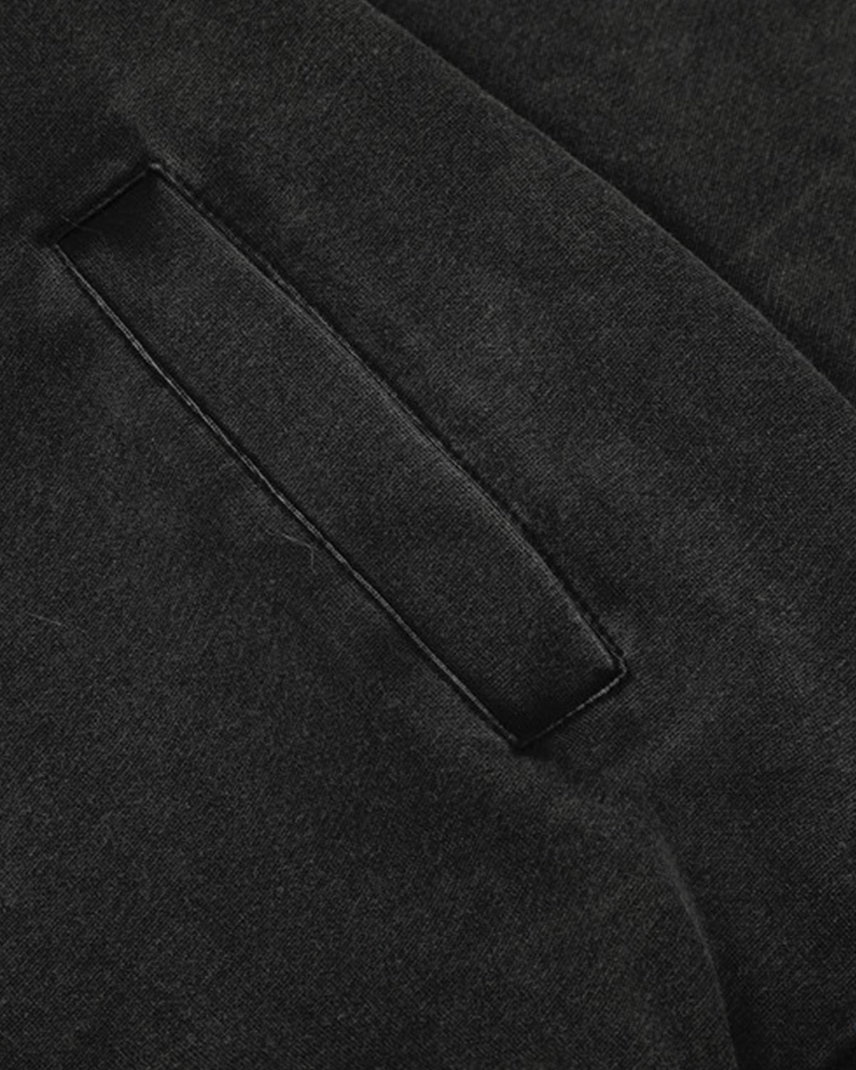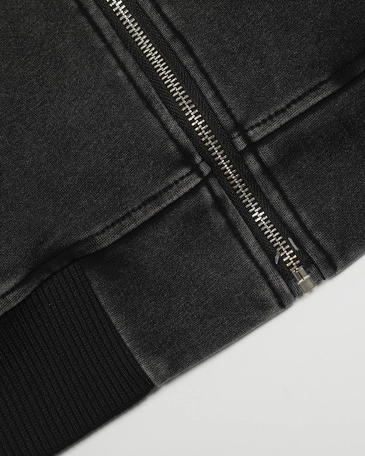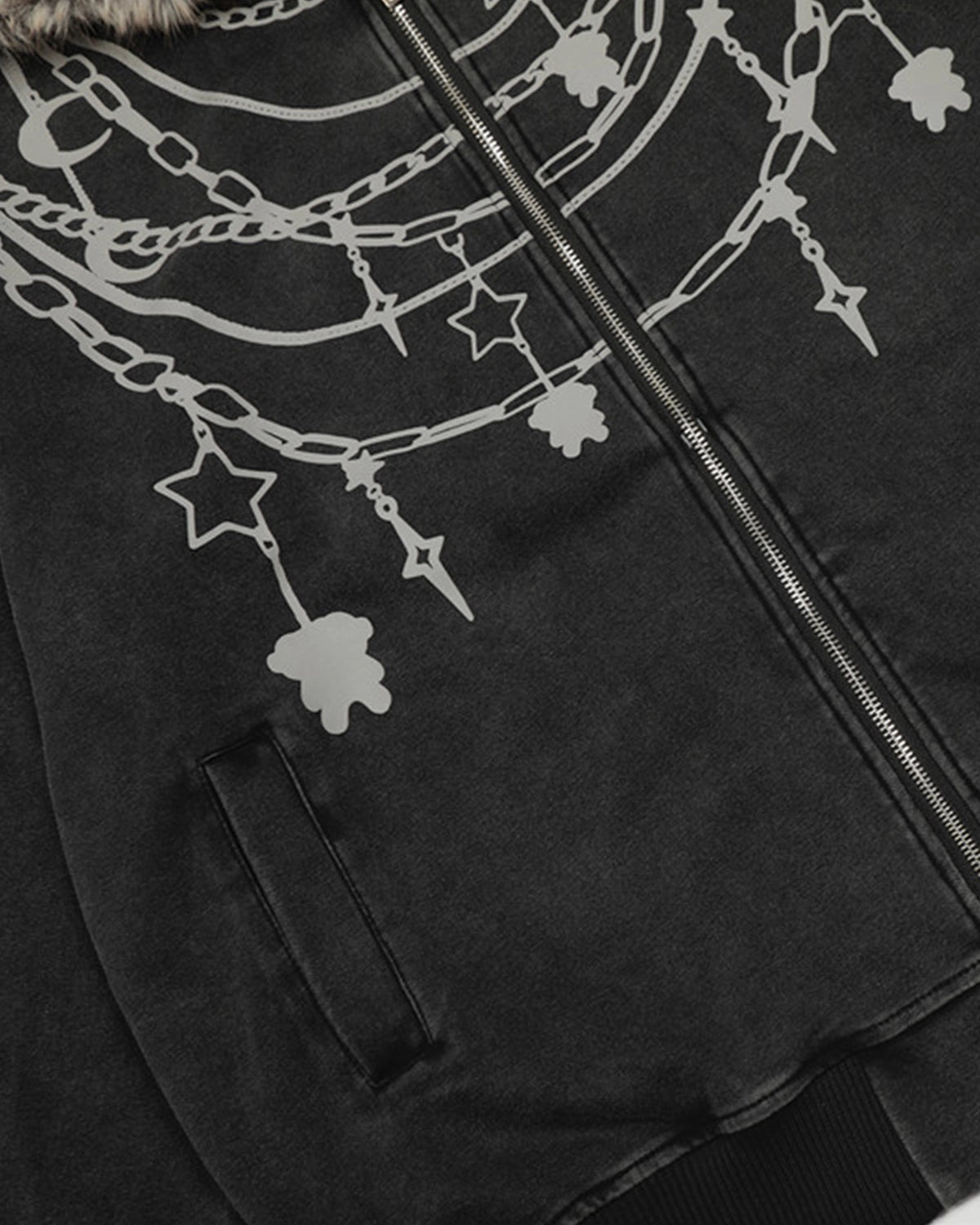 Chain Acid Wash Zip Up Jacket With Fur Collar | Inflation Streetwear