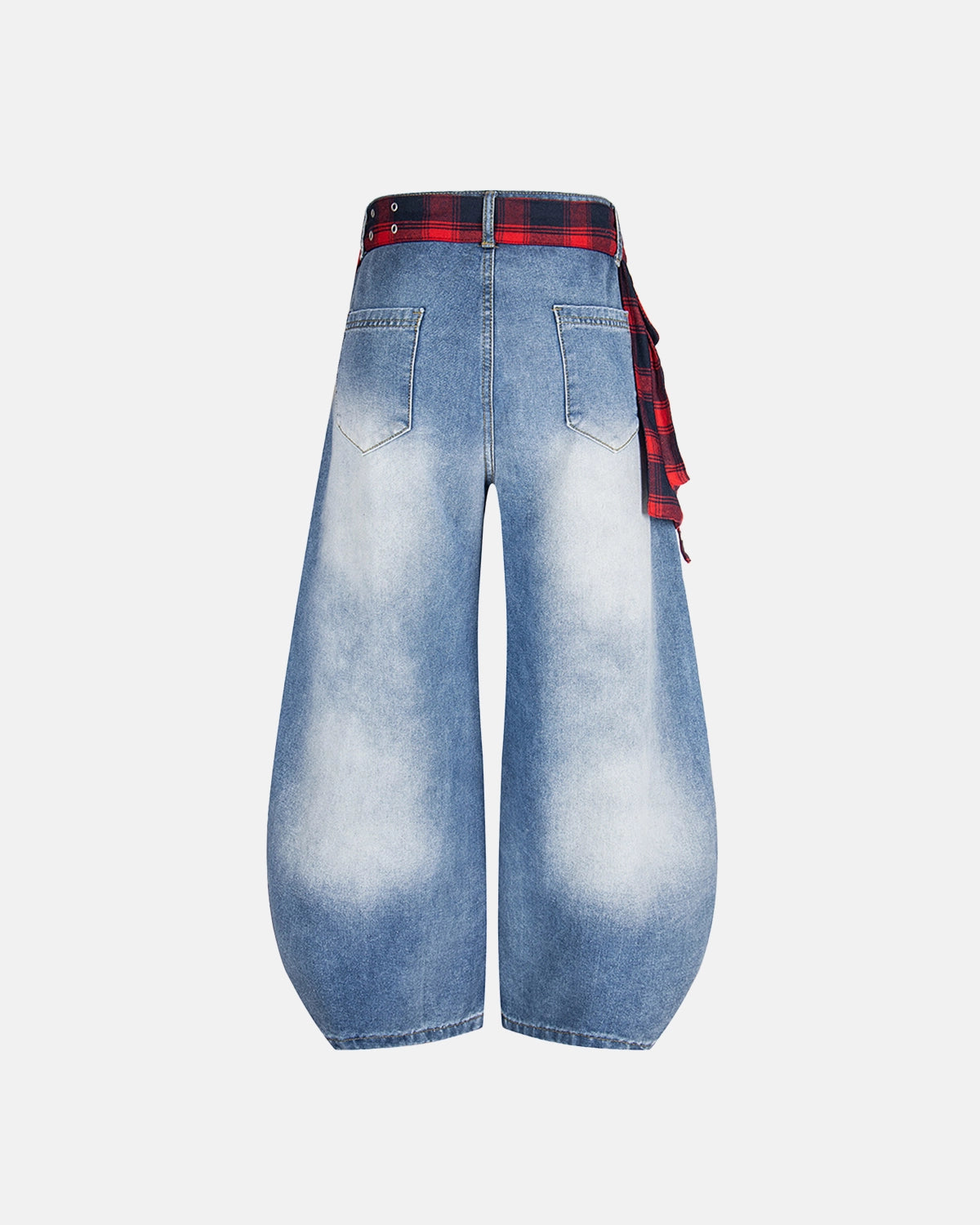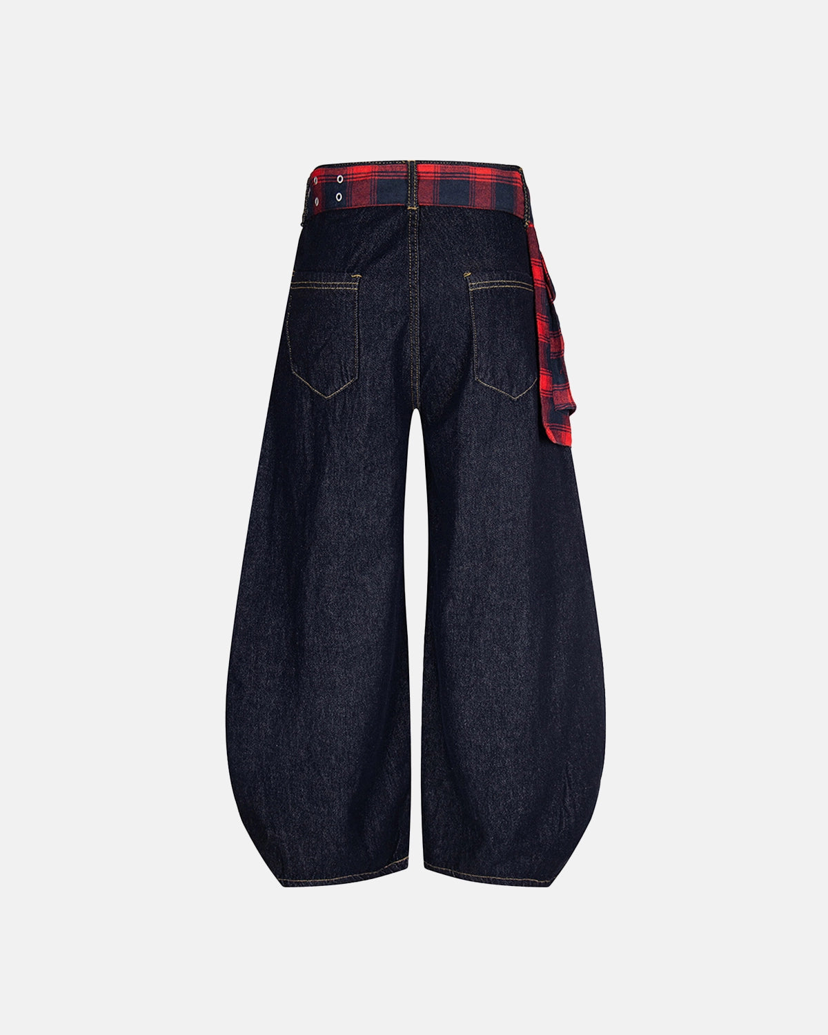 Check Patched Baggy Barrel Jeans | Inflation Streetwear