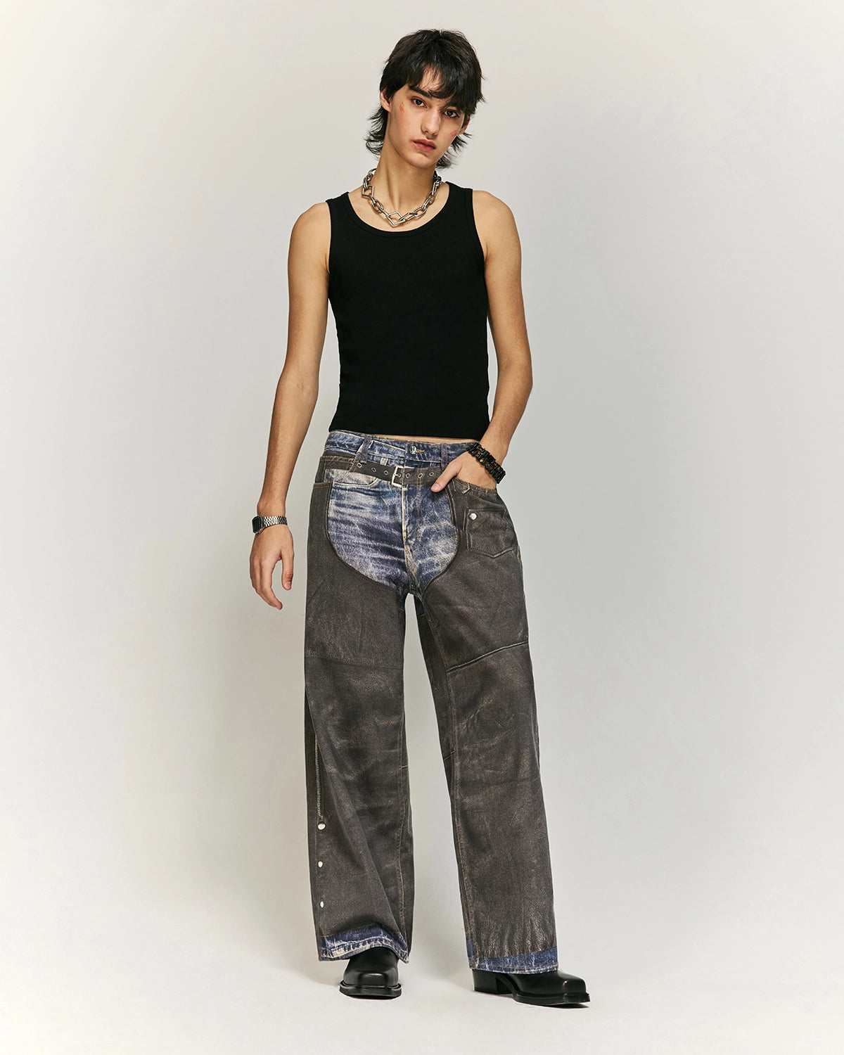 Colorblock Digital Printing Cotton Jeans | Inflation Streetwear