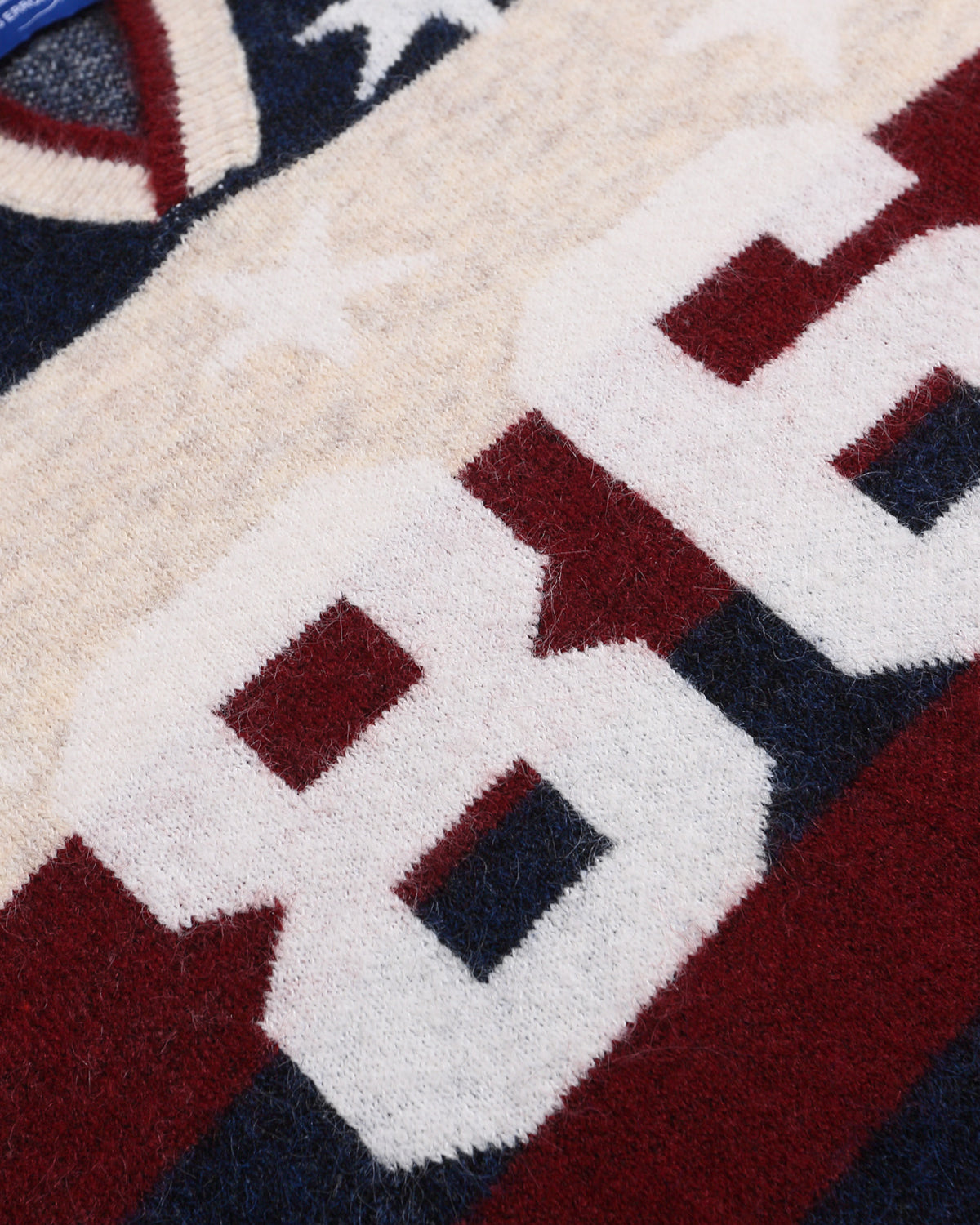 The V-neck design and ribbed collar add a touch of vintage sportswear, while the soft, knitted fabric offers comfort and warmth.