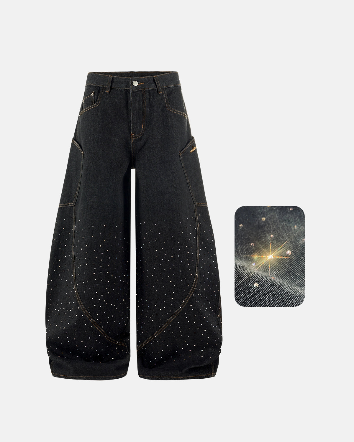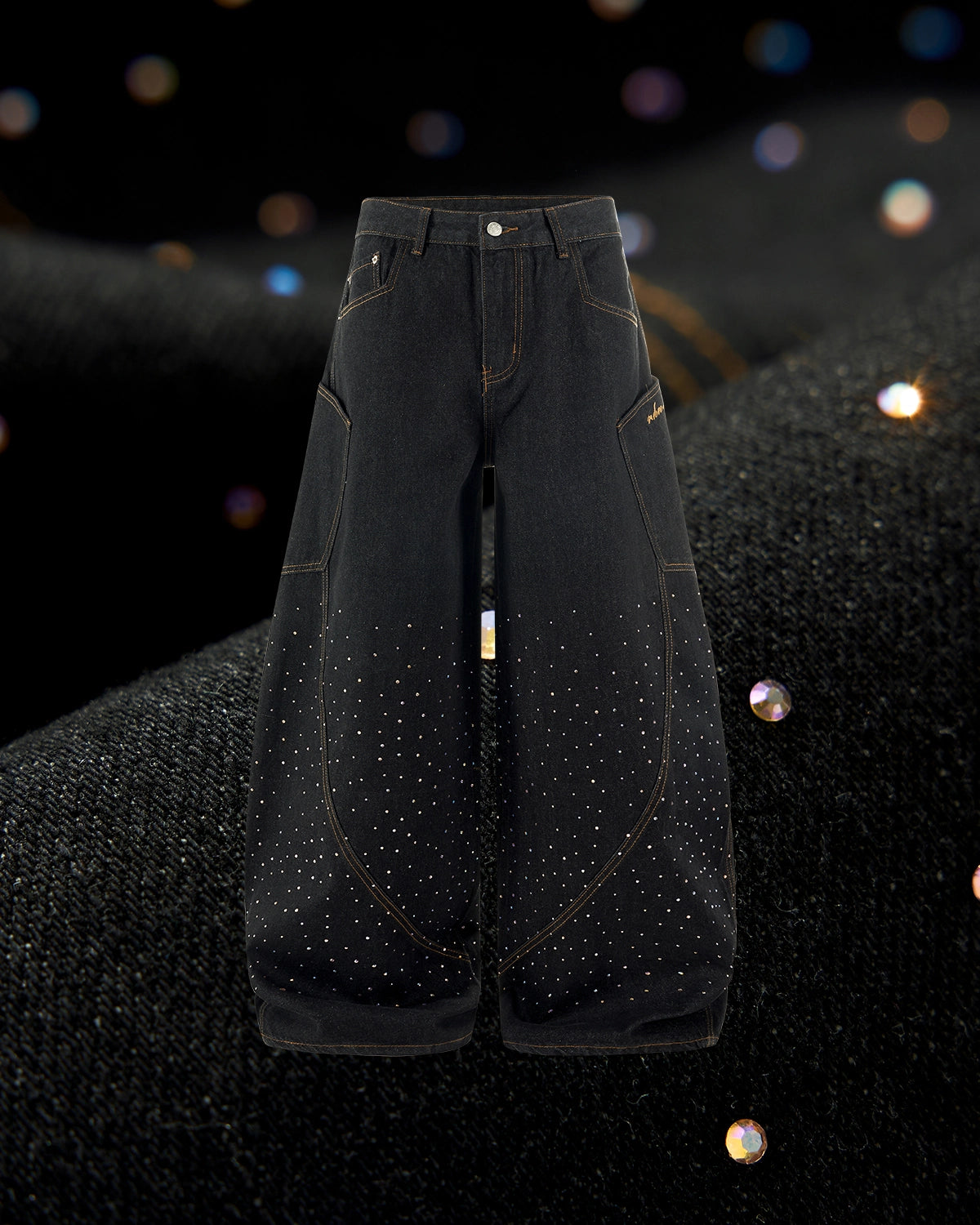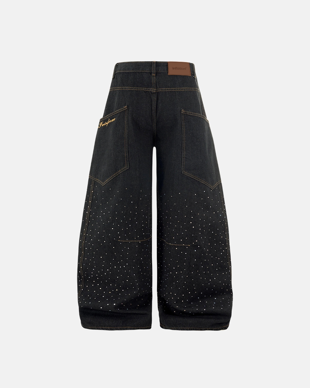Colorful Rhinestone Raw Barrel Jeans | Inflation Streetwear