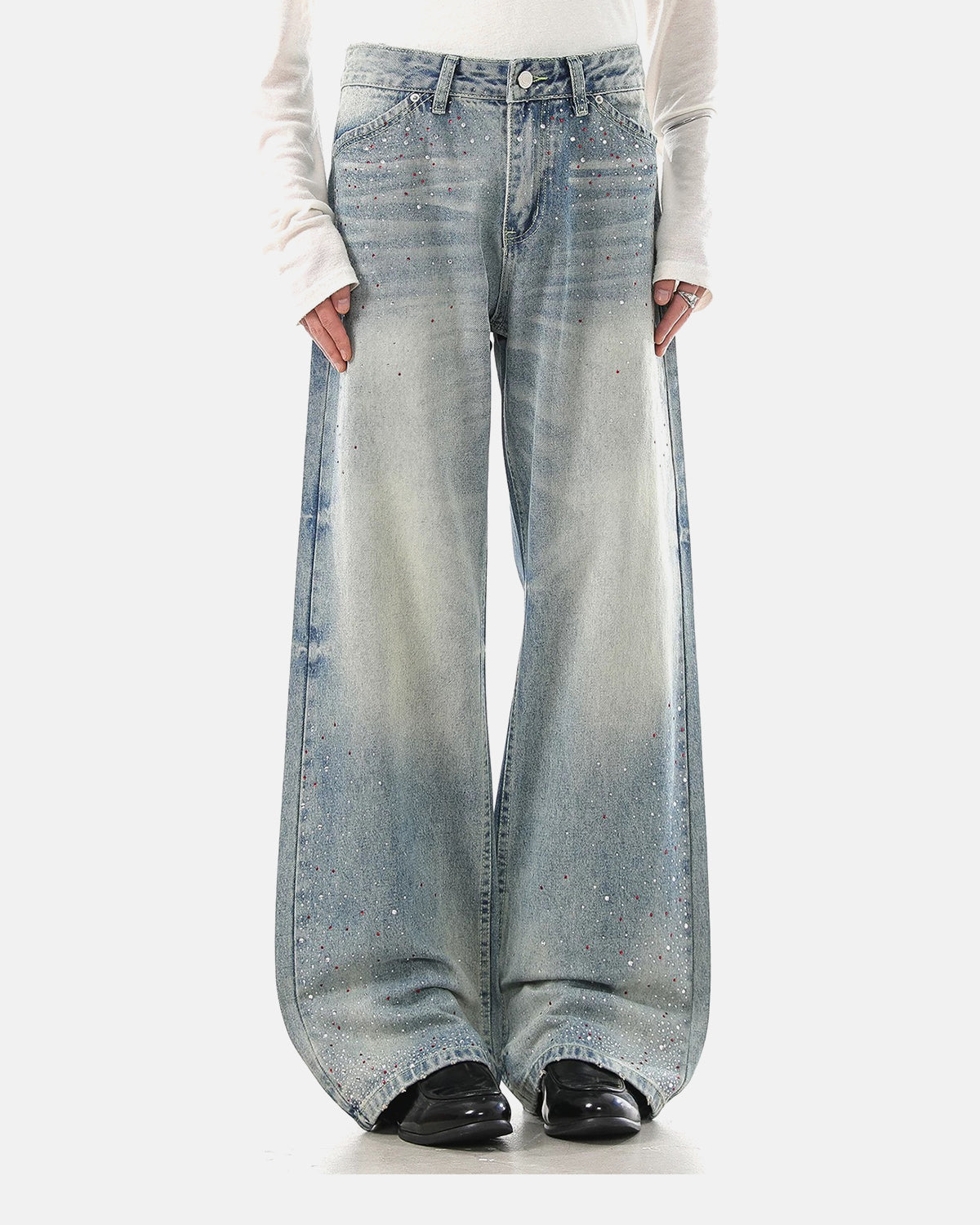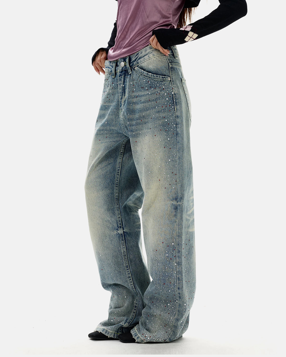 Colorful Rhinestone Straight Leg Jeans | Inflation Streetwear