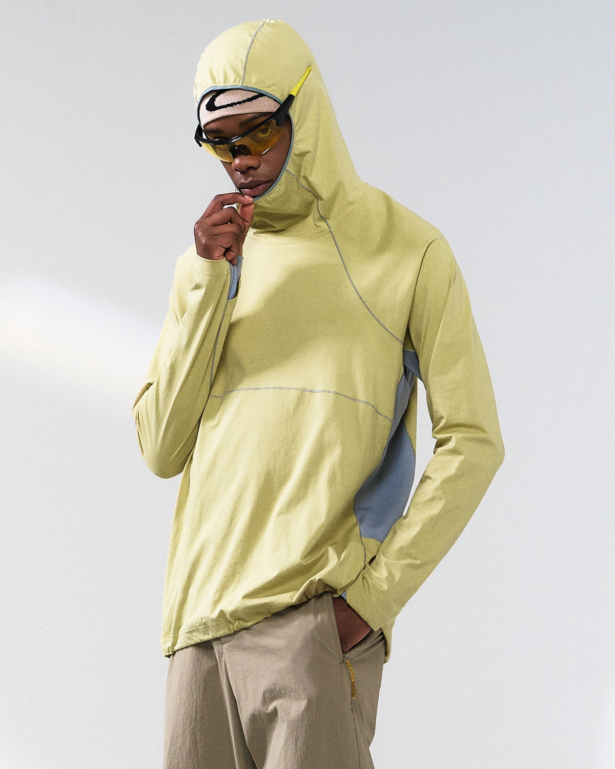 Stay cool and dry with the INFLATION COOLMAX breathable hooded T-shirt, a lightweight long sleeve activewear designed with quick-dry fabric, High neck and color-block style. Perfect for outdoor sports, hiking, running, and everyday training, this hooded tee delivers comfort, function, and streetwear-inspired performance.