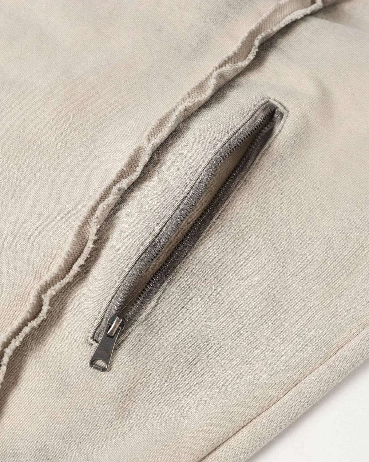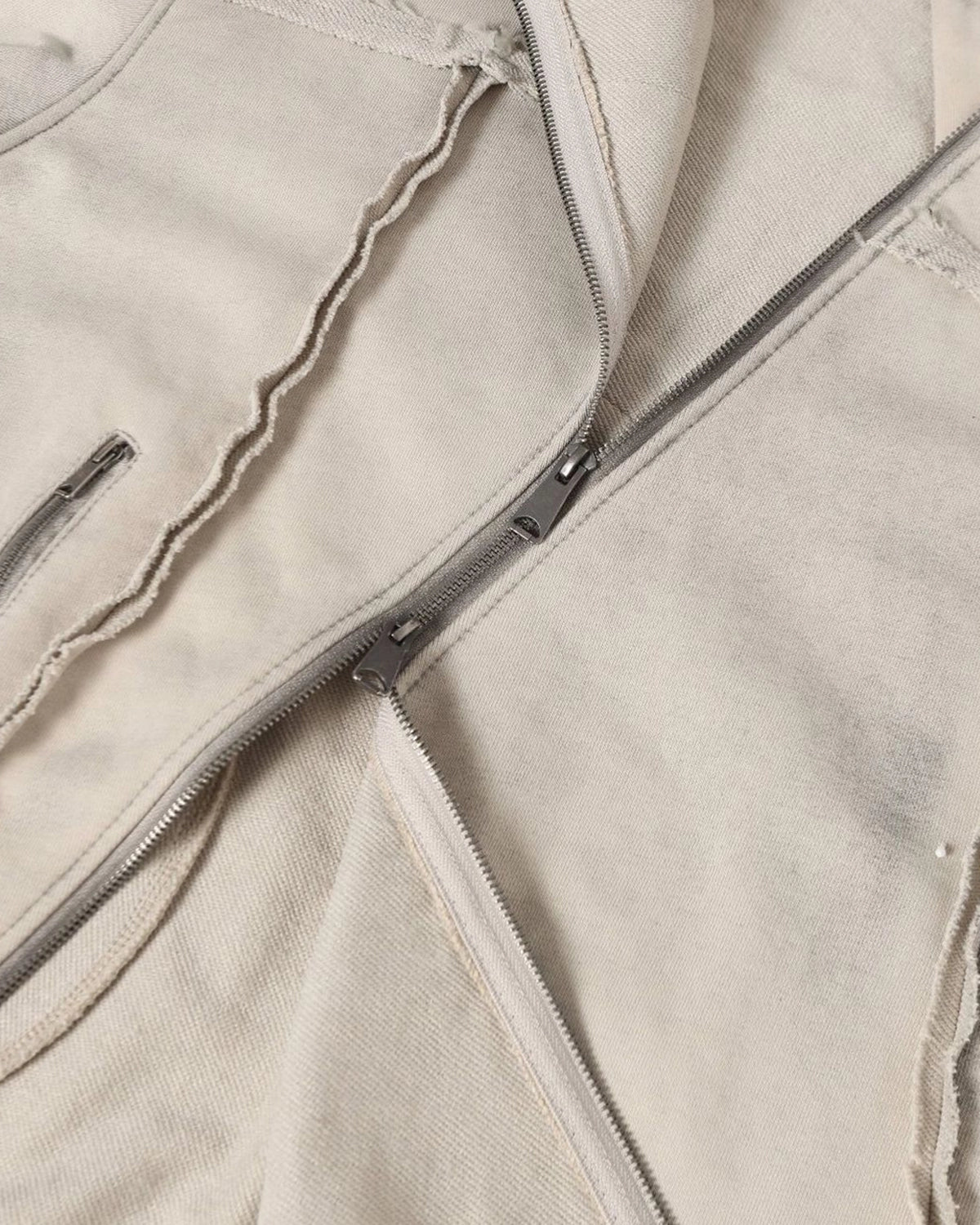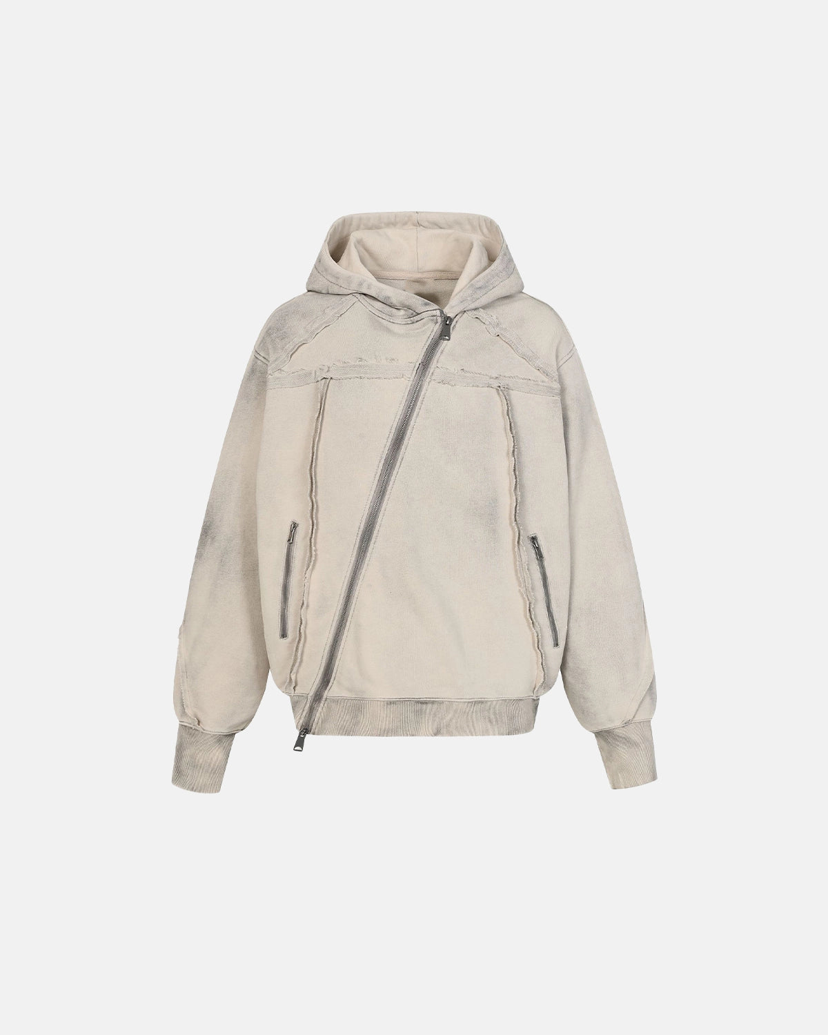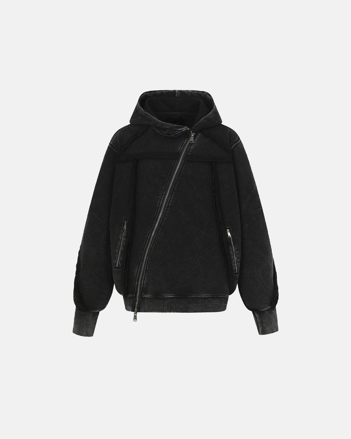 Diagonal Zipper Acid-Washed Hoodie | INFLATION Streetwear
