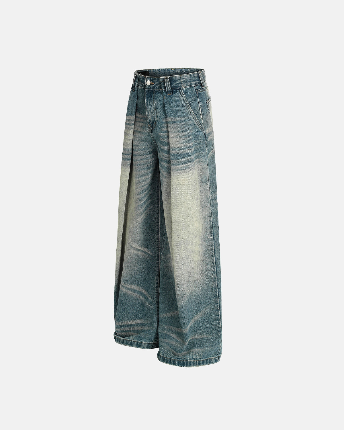 Distressed Pleated Whisker Texture Barrel Jeans | Inflation Streetwear
