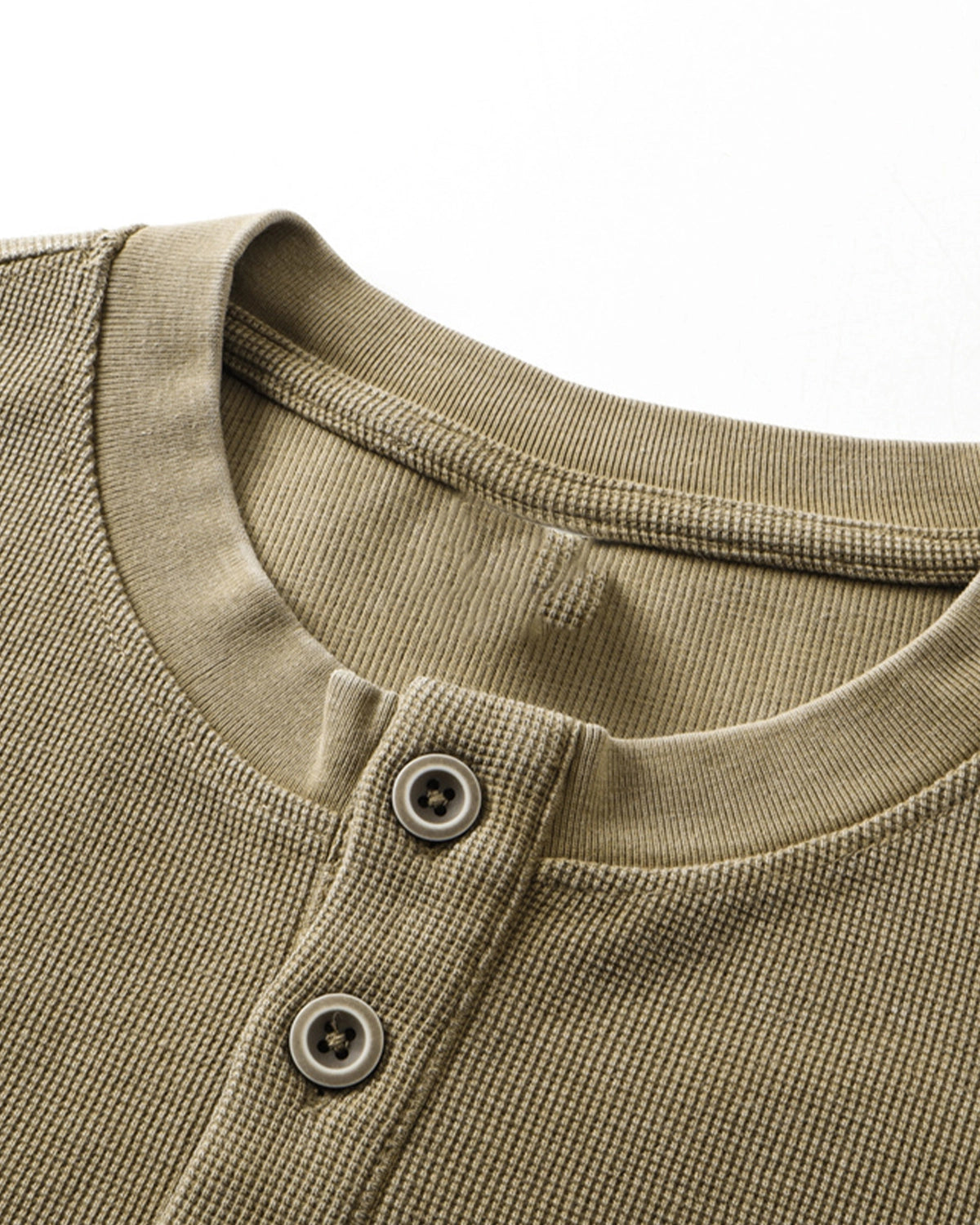 Crafted with a vintage washed and garment-dyed process, this waffle Henley T-shirt delivers a naturally faded tone and rich surface texture, giving each piece a worn-in, retro character.