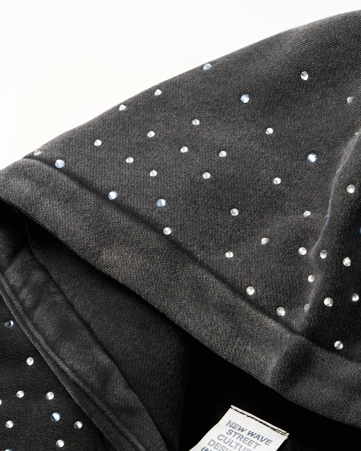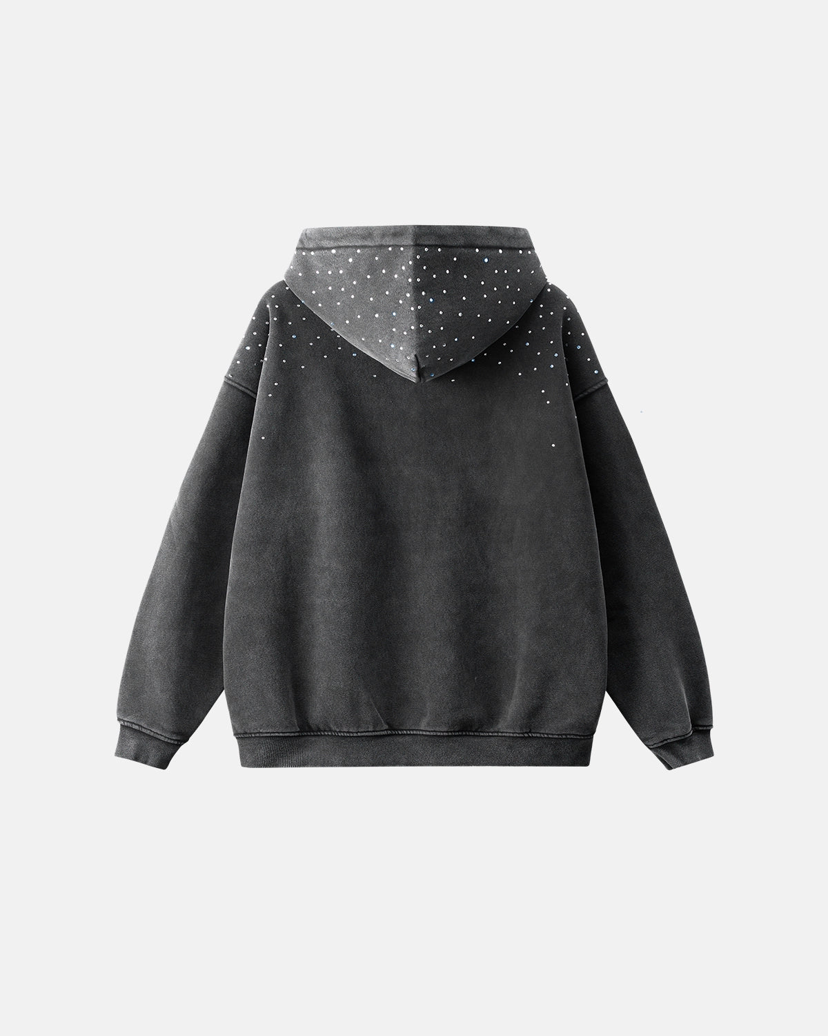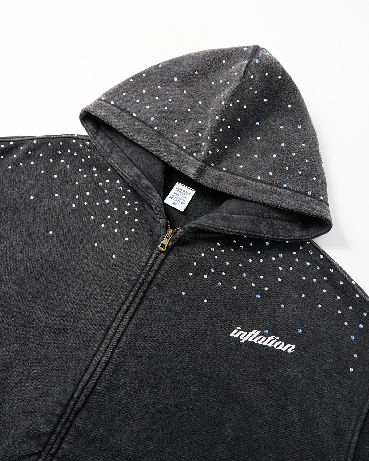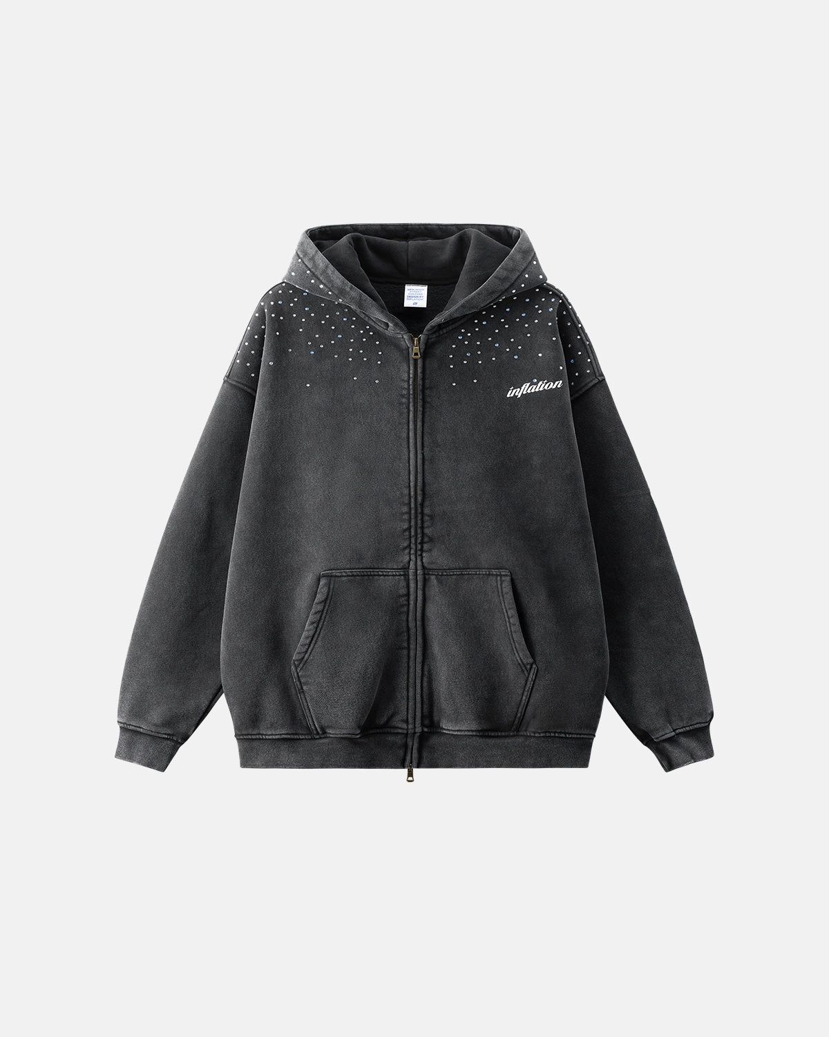 Distressed Washed Rhinestone Zip Up Hoodies | Inflation Streetwear
