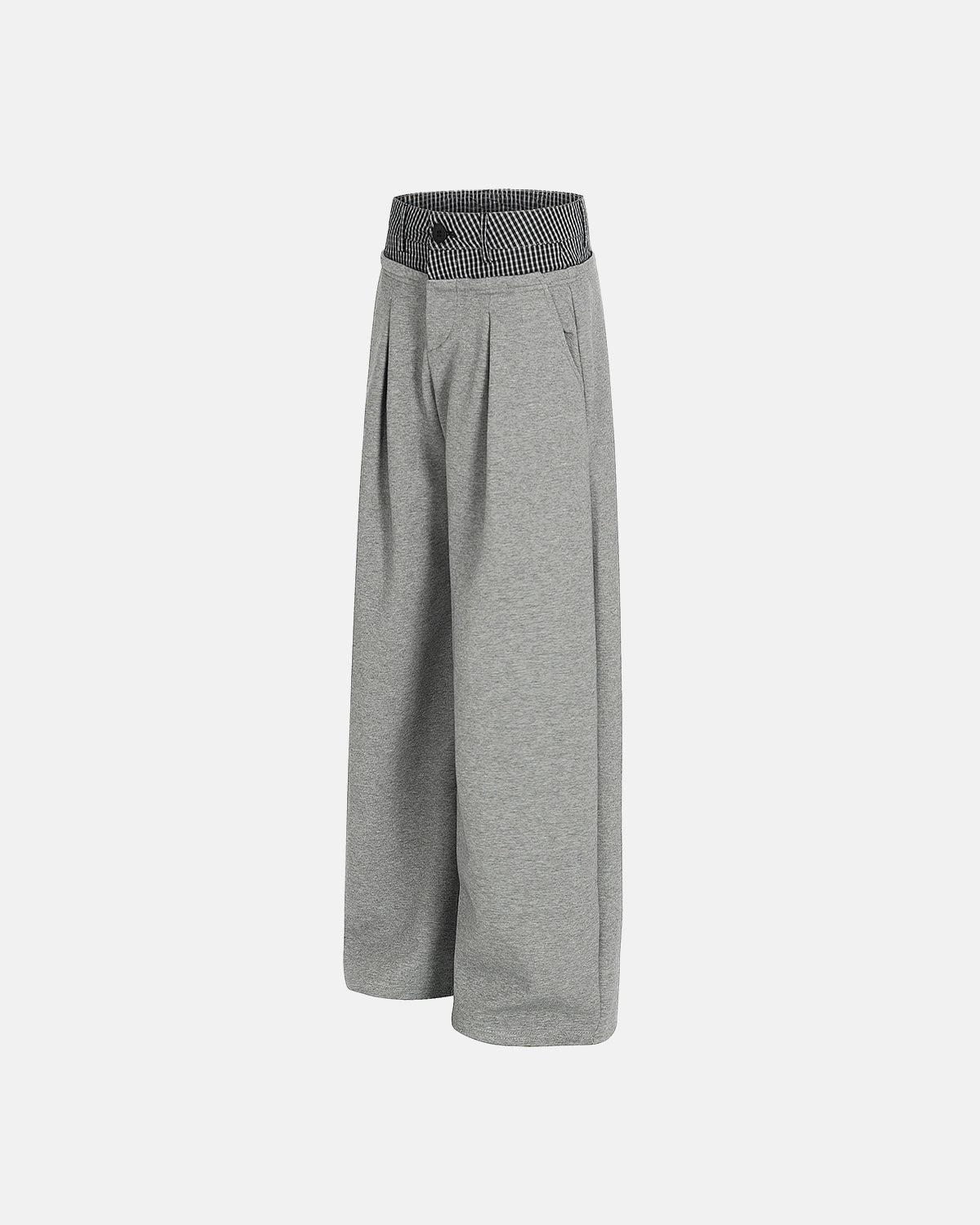 Featuring a unique layered waistband and relaxed straight-leg fit, this piece blends comfort with modern edge.