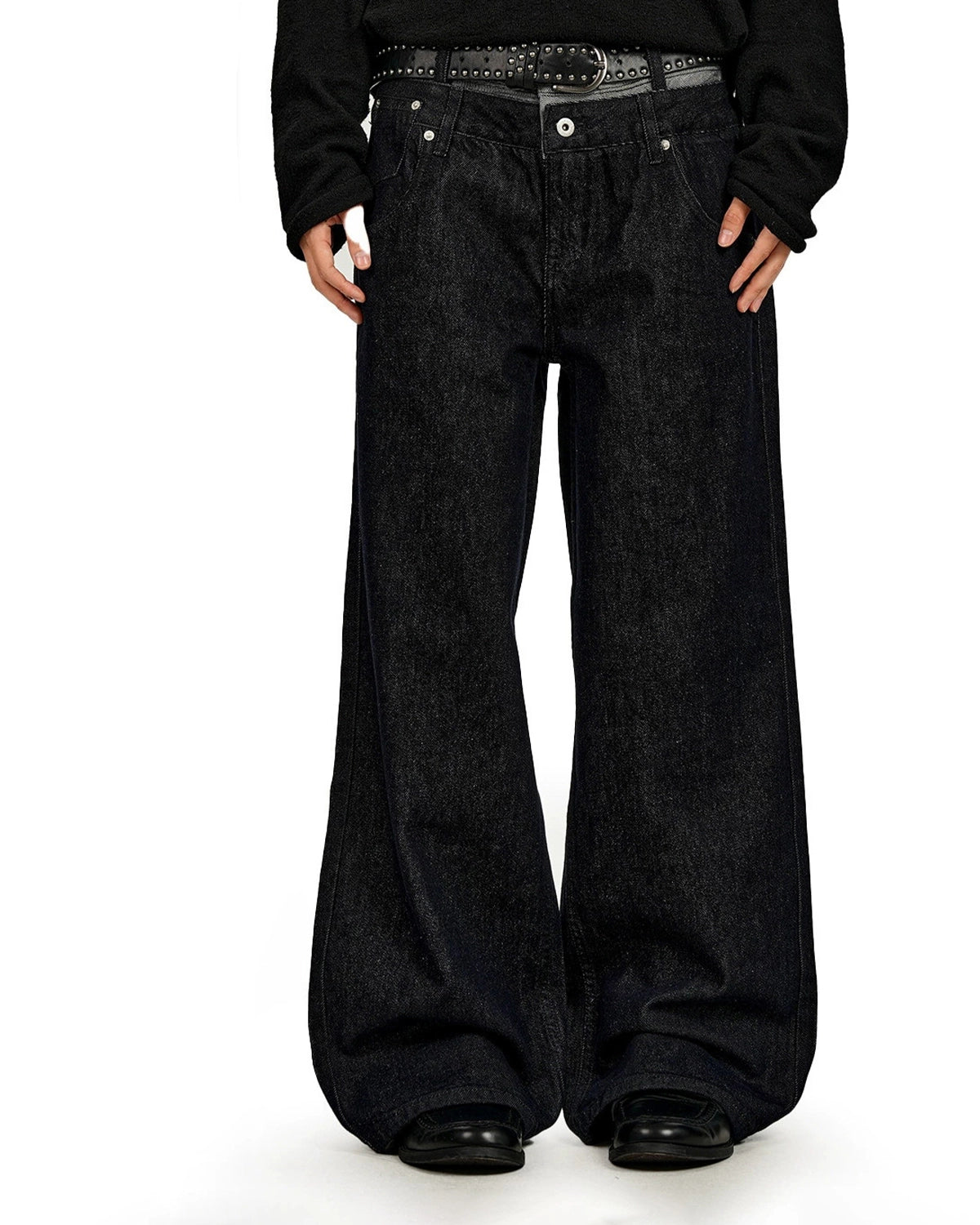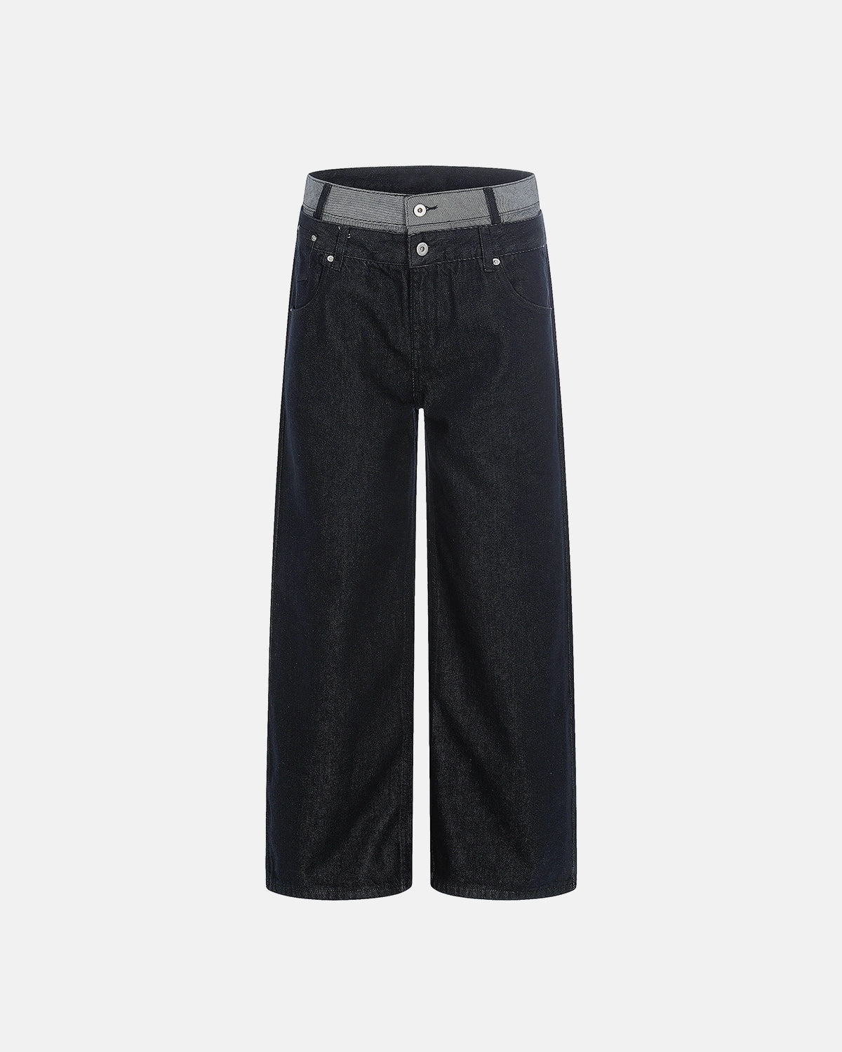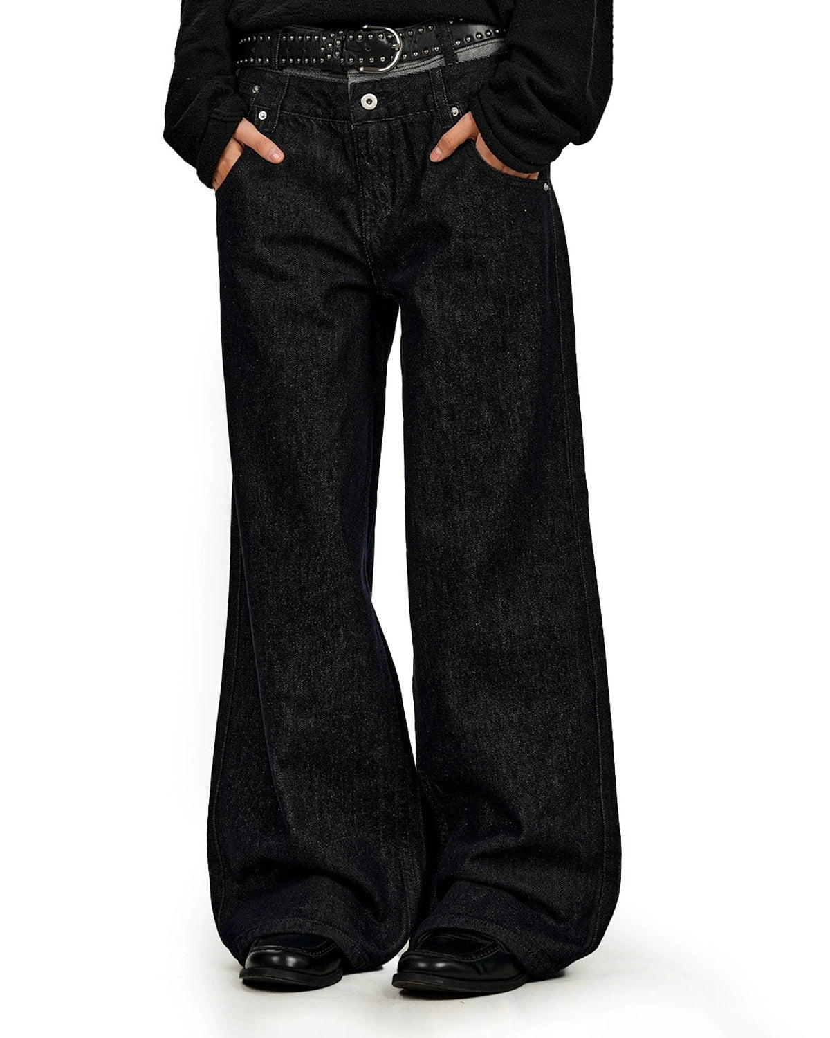Double Waist Raw Denim Straight Leg Jeans | Inflation Streetwear
