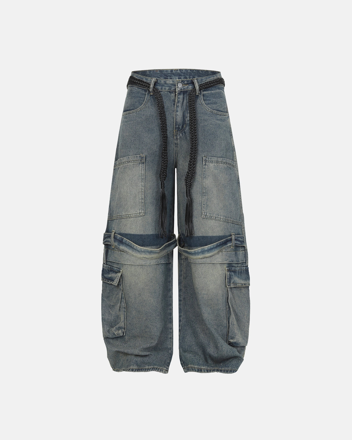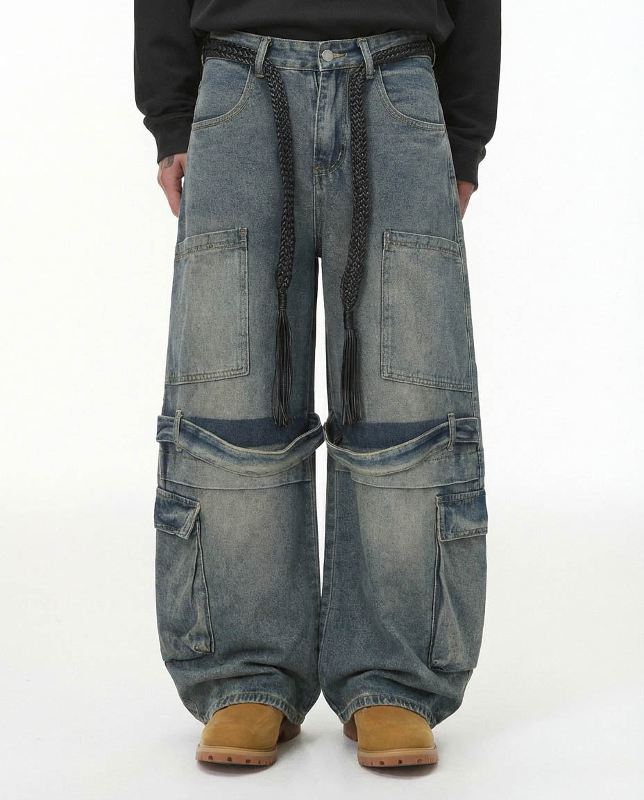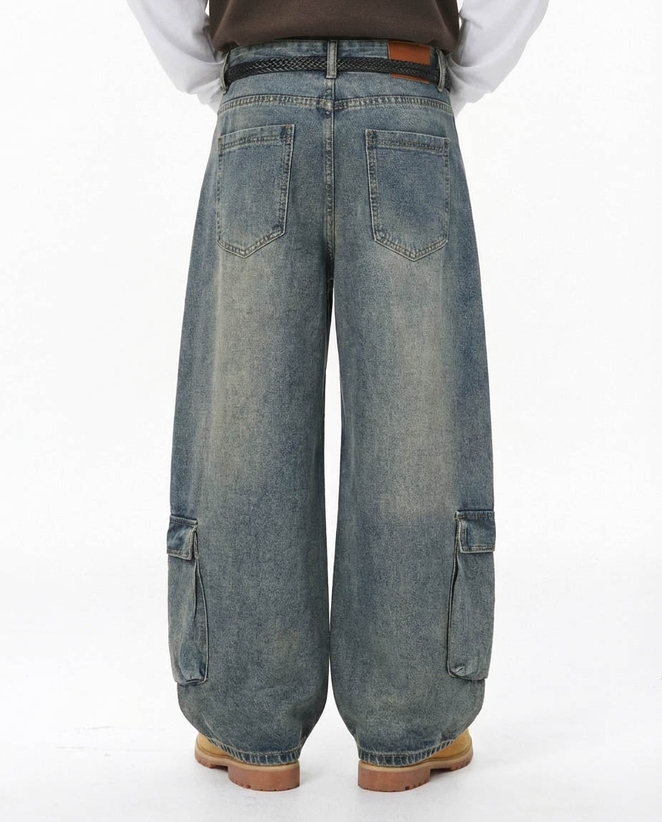 Drawstring Multi-Pocket Cargo Barrel Jeans | Inflation Streetwear