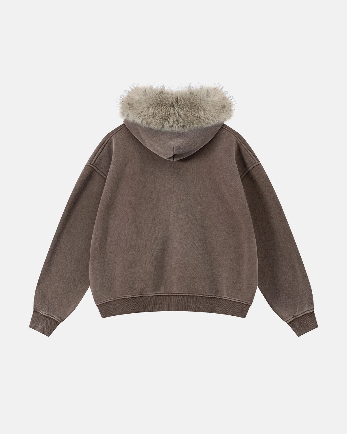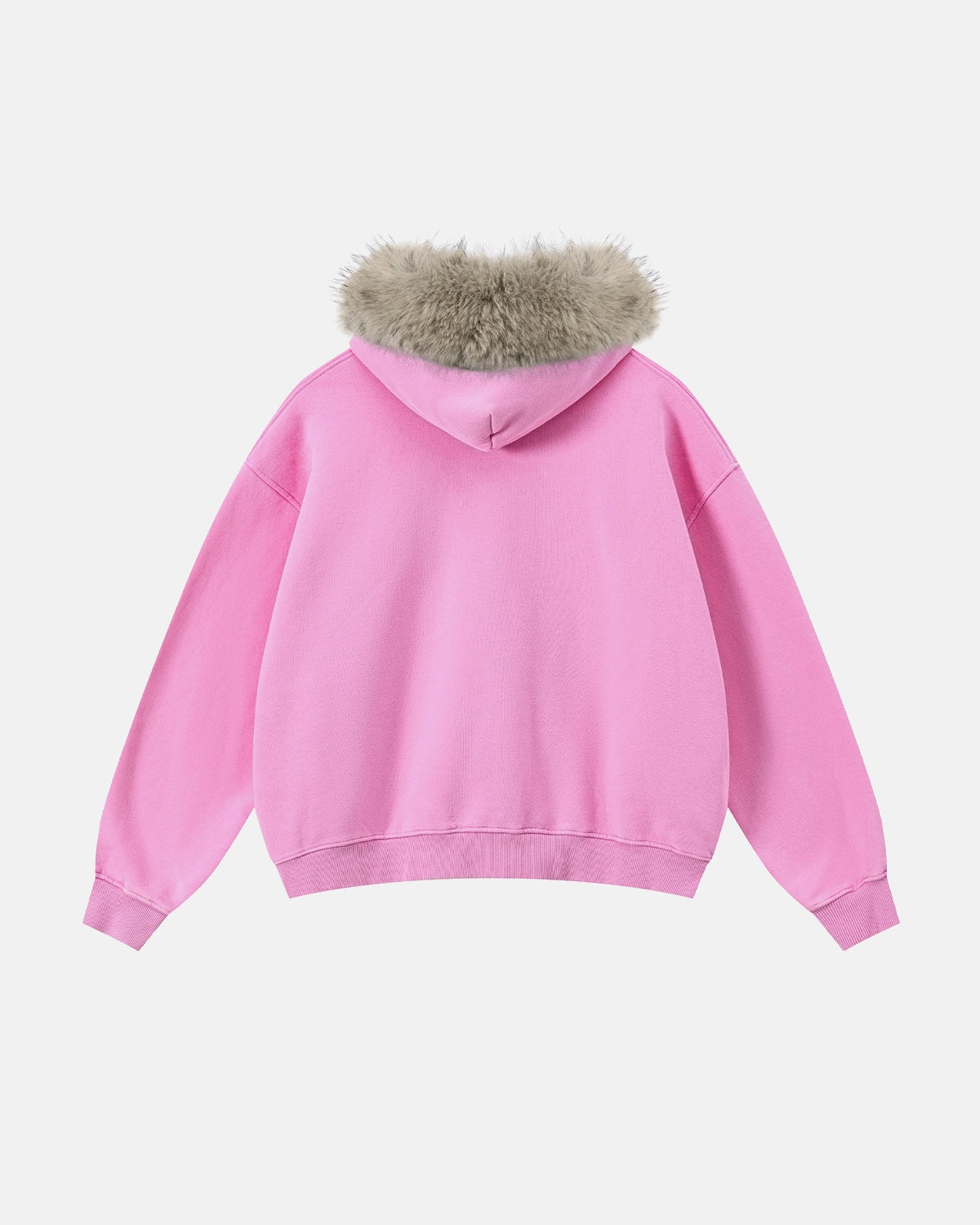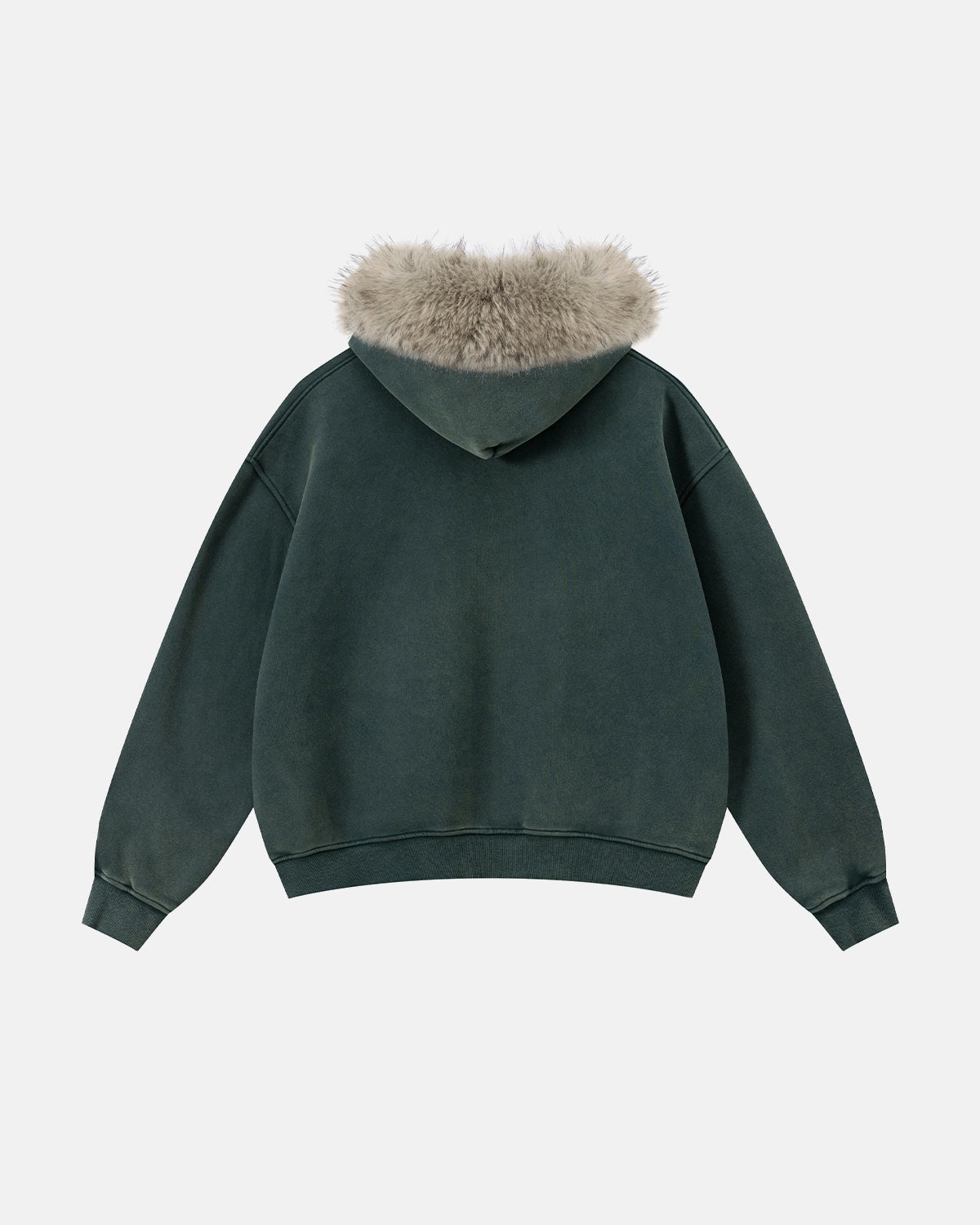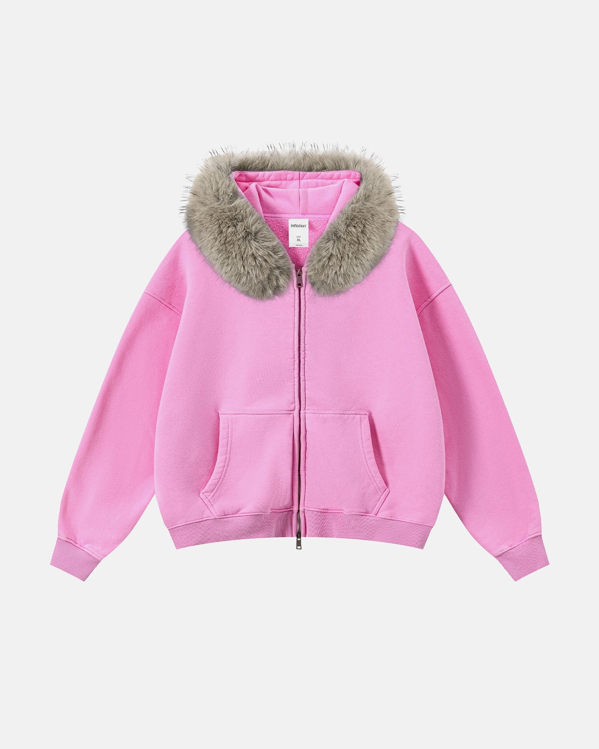 Faux Fur Collar Acid Wash Zip Up Hoodies | Inflation Streetwear