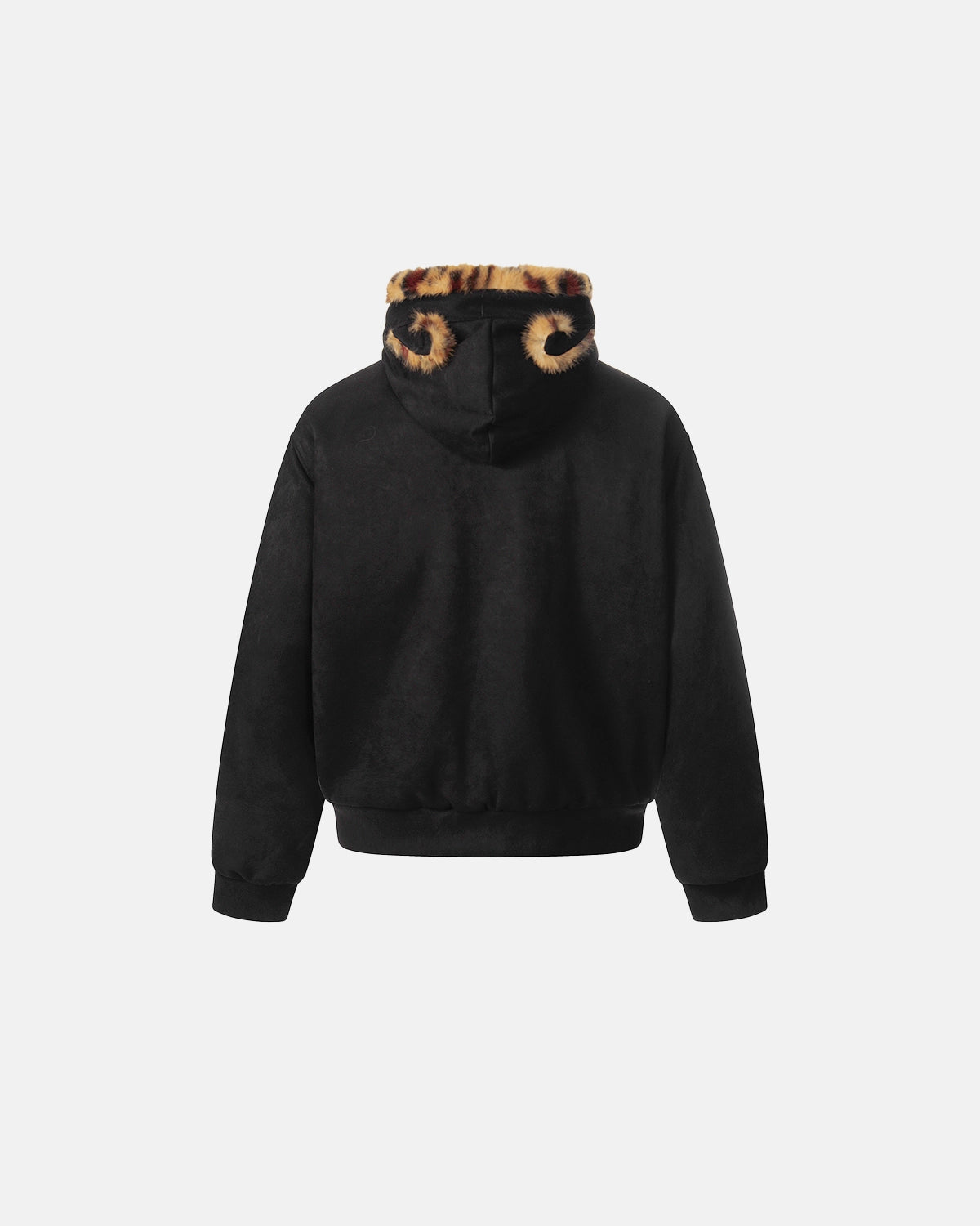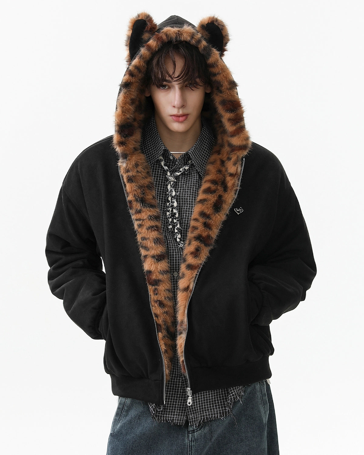 Faux Fur Leopard Sueded Hooded Jacket | INFLATION Streetwear