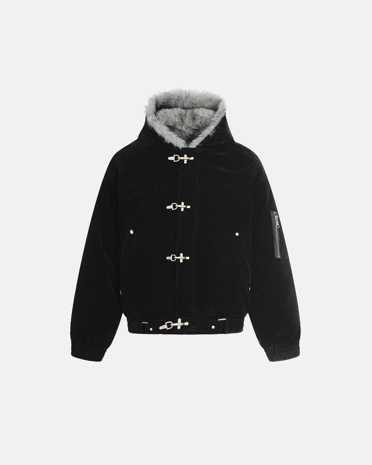 Faux Fur Lined Clasp Bomber Jacket | Inflation Streetwear