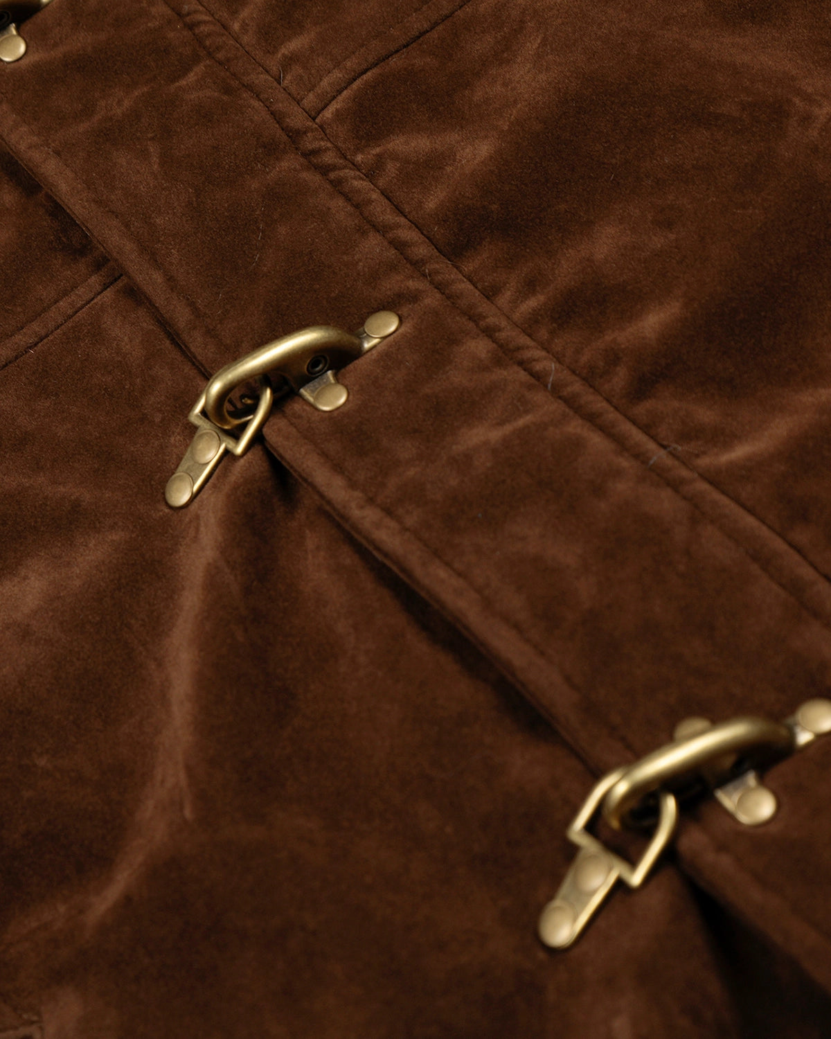• Metal Clasp Closure: Inspired by vintage fireman jackets, bringing a unique industrial edge.