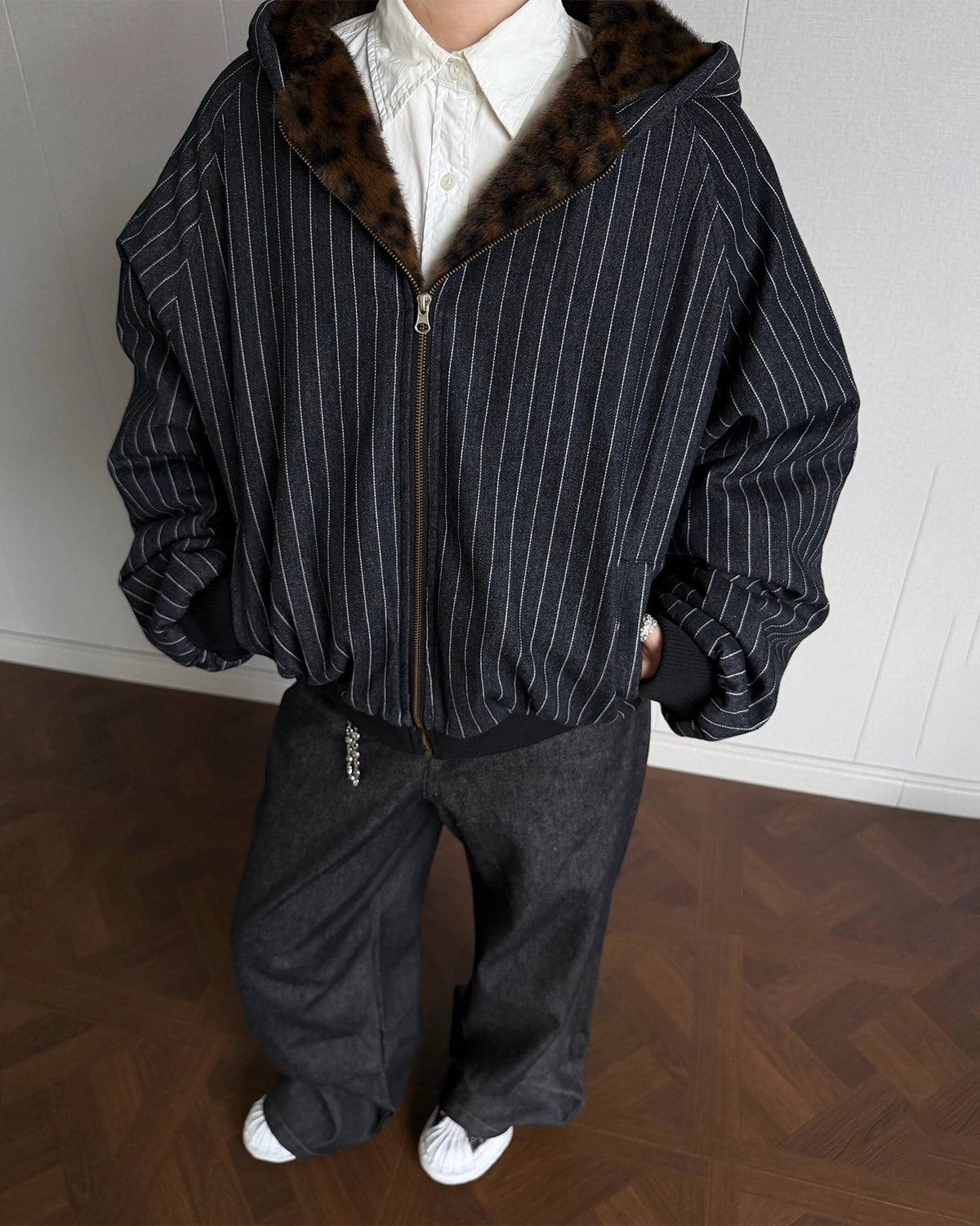 Faux Fur Pinstripe Padded Jacket | Inflation Streetwear