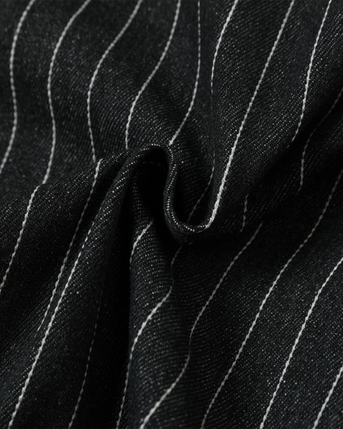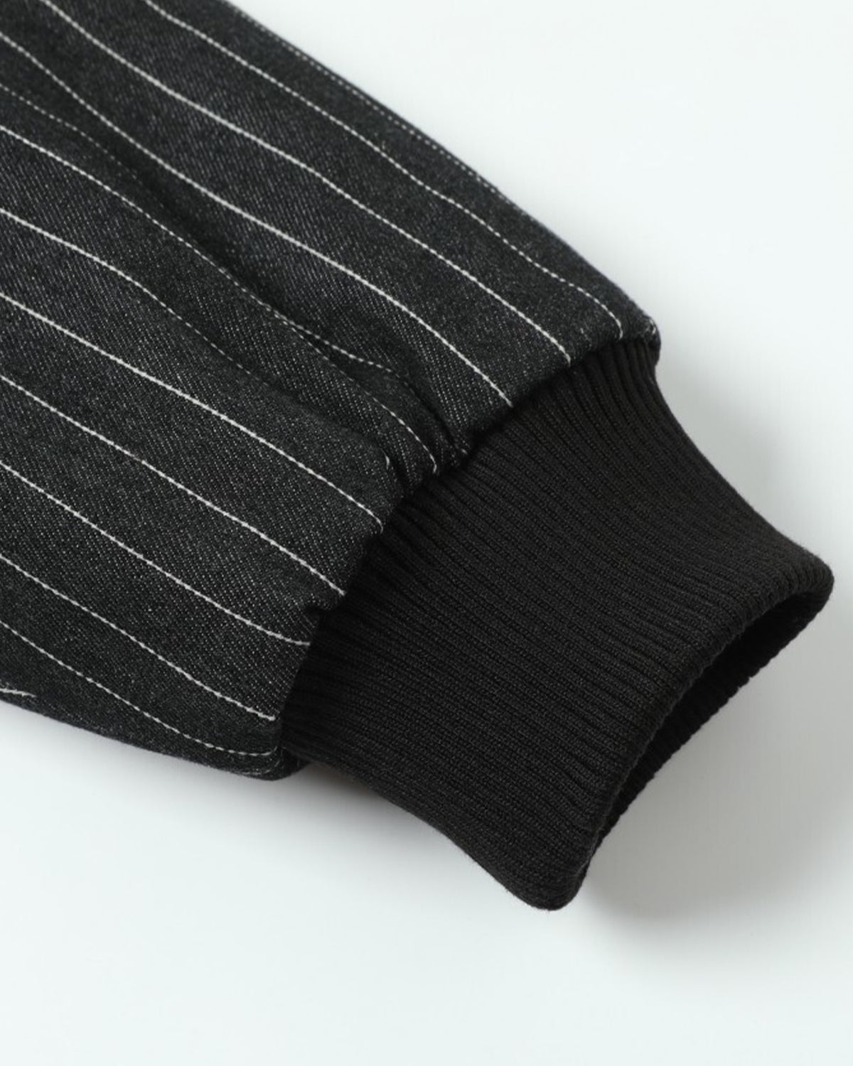 Crafted from premium cotton fabric, this jacket features a timeless pinstripe pattern that adds a touch of sophistication to your streetwear look.