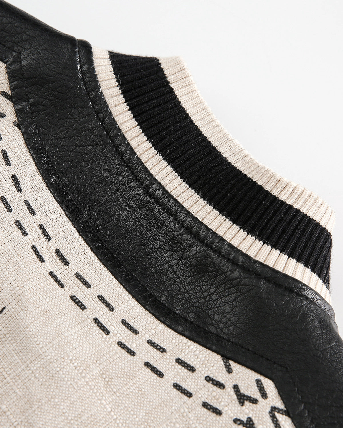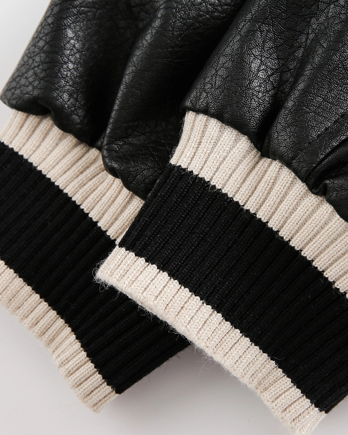 Totem Embroidered PU Sleeve Varsity Jacket | Inflation Streetwear