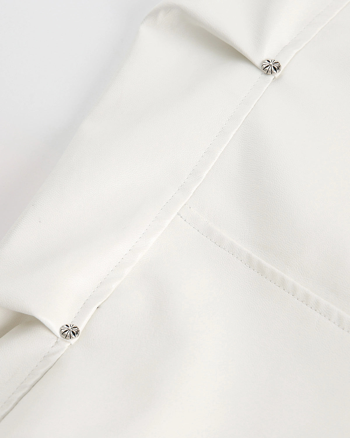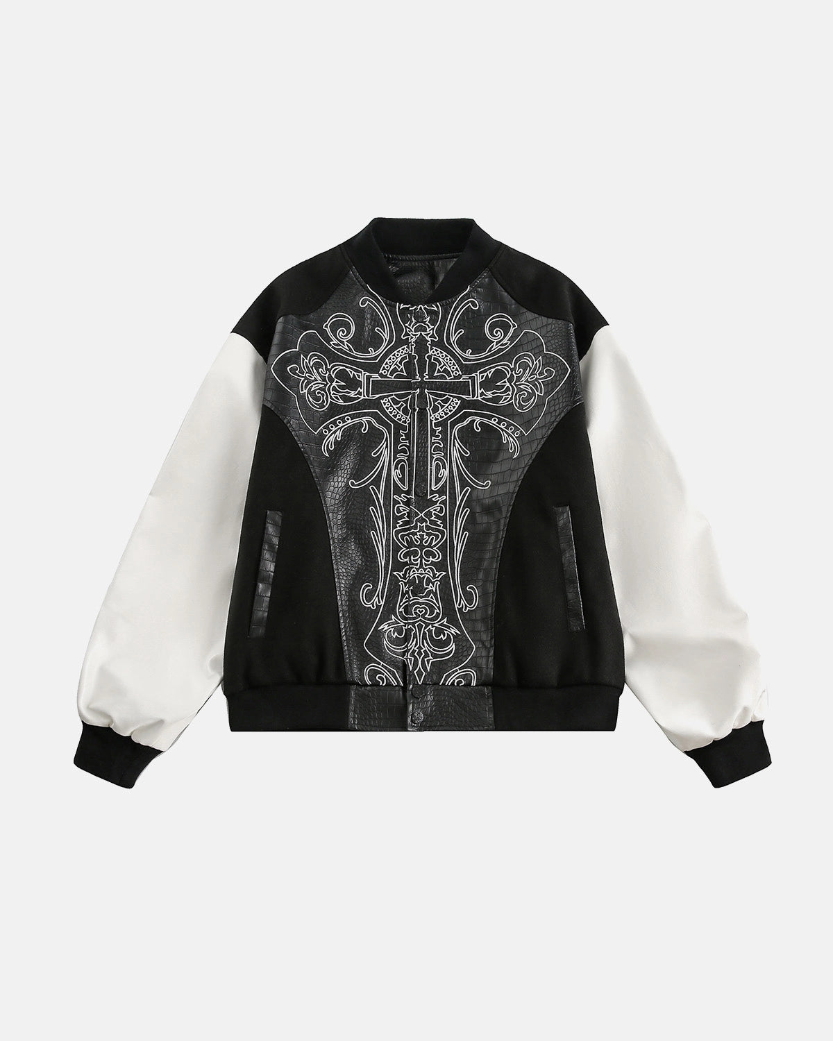 Faux Leather Cross Embroidery Bomber Jacket | Inflation Streetwear