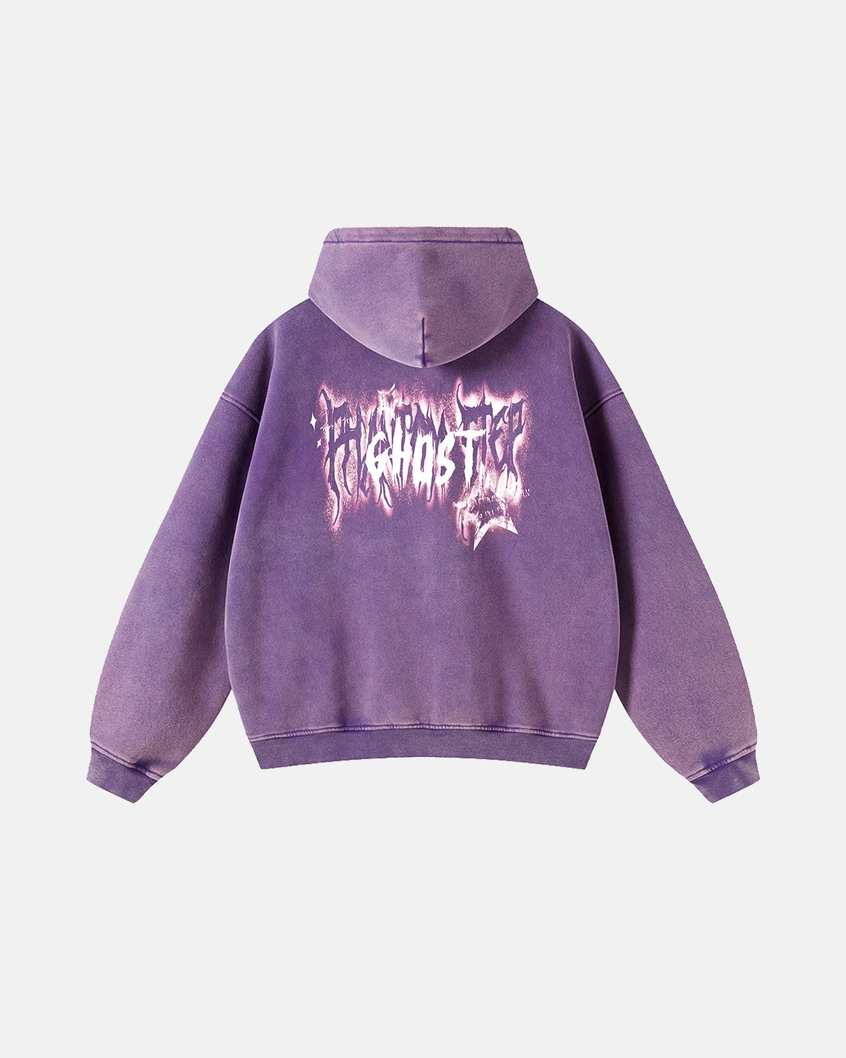 Ghost Acid Wash Zip Up Hoodies | Inflation Streetwear