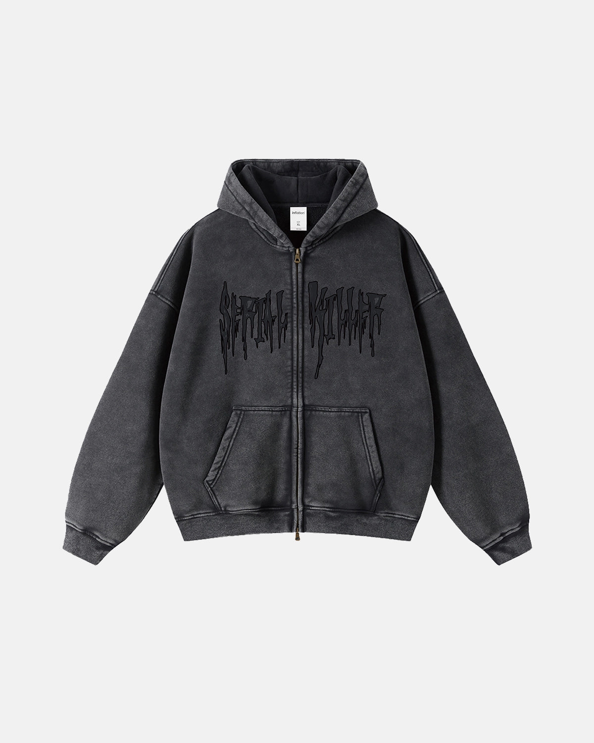 Gothic Acid Wash Zip Up Hoodies | Inflation Streetwear