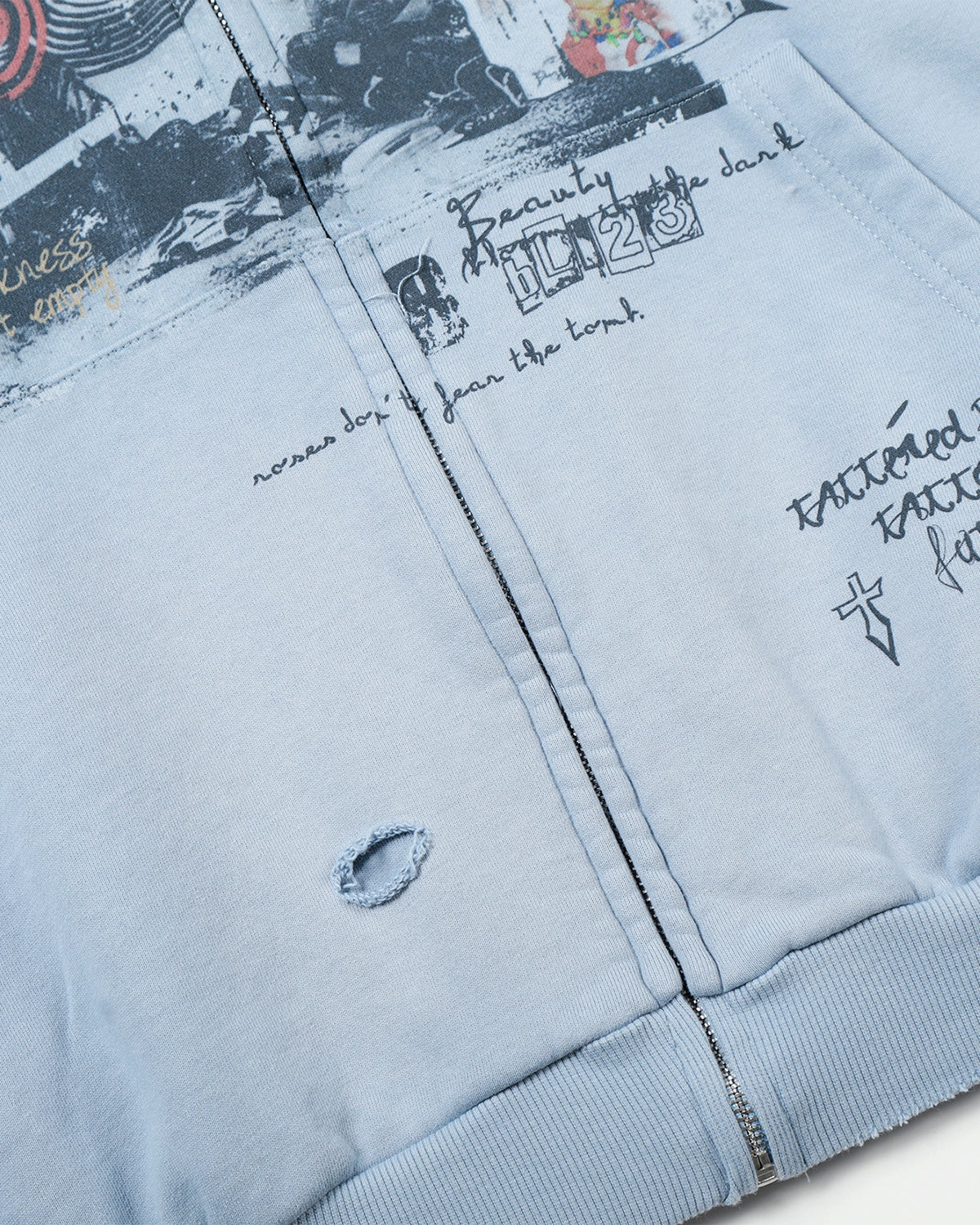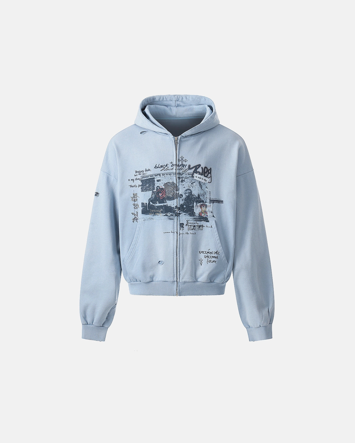 This graffiti character distressed washed cropped zip hoodie delivers a bold, worn-in streetwear aesthetic inspired by underground culture. Featuring expressive character graffiti prints, intentional distressed holes, and an all-over washed finish, this zip-up hoodie captures a raw, vintage look with modern attitude. Crafted from heavyweight fabric for structure and comfort, the relaxed fit makes it ideal for layering in everyday streetwear styling.