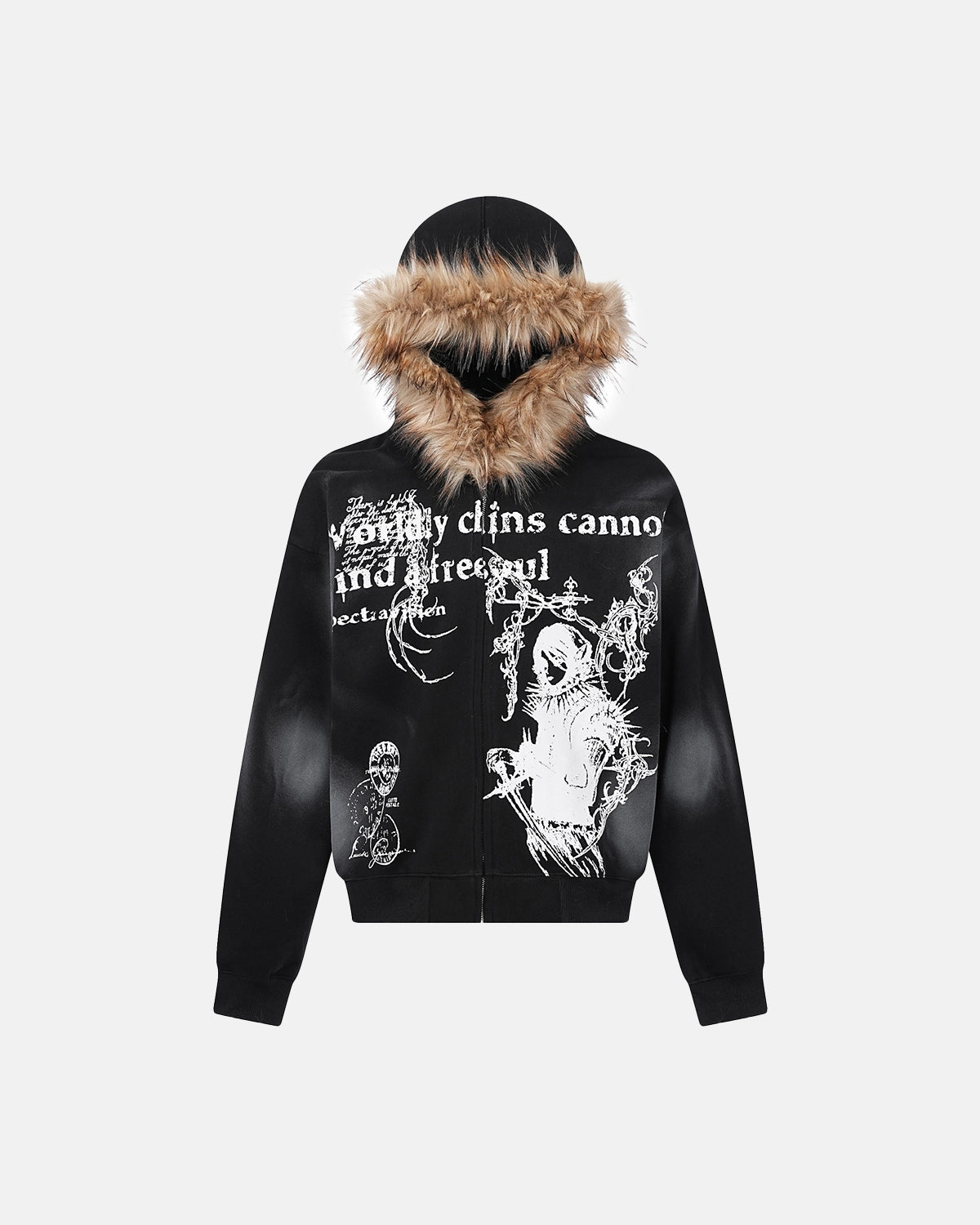 Graffiti Faux Fur Fleece Zip Up Hoodies | Inflation Streetwear