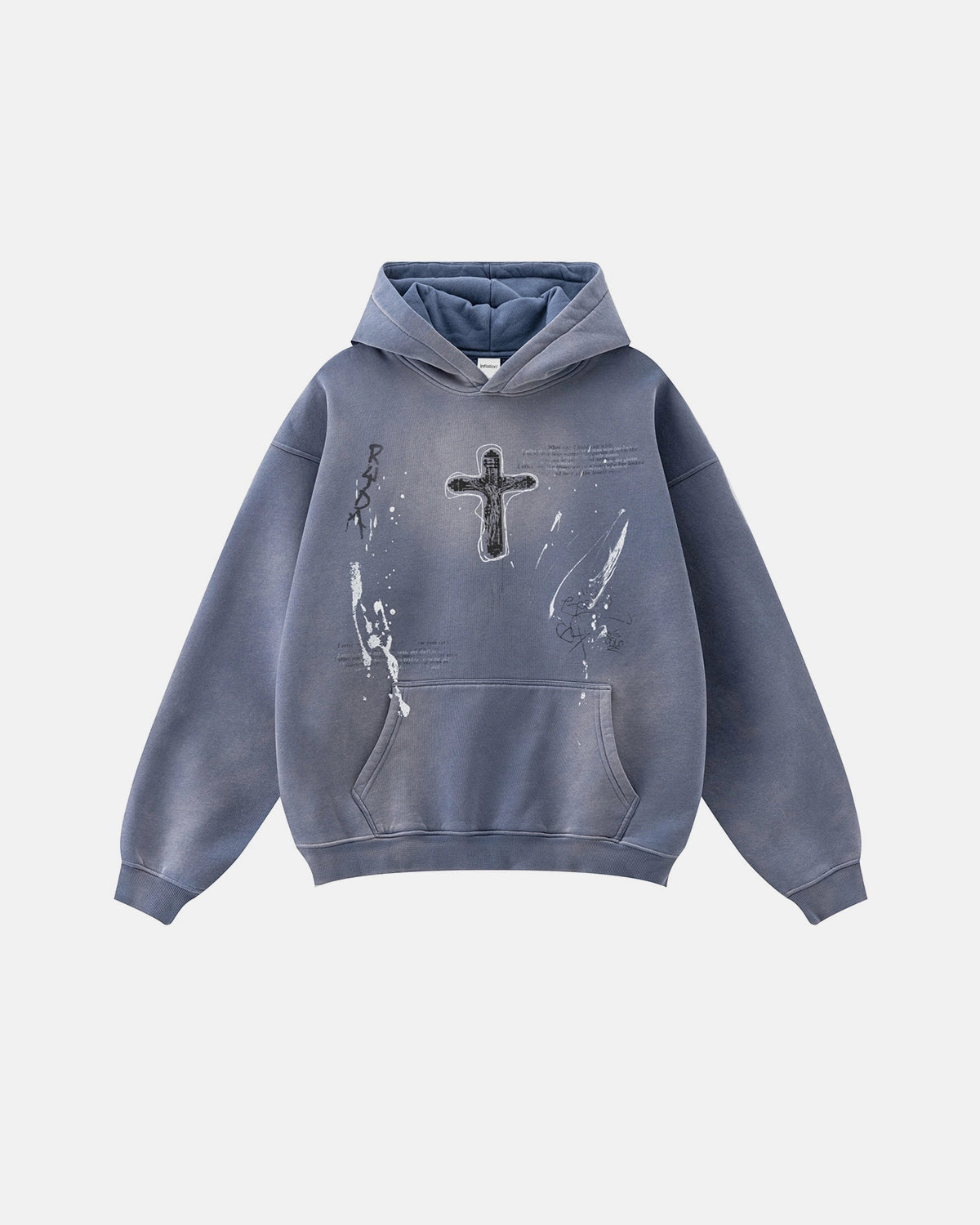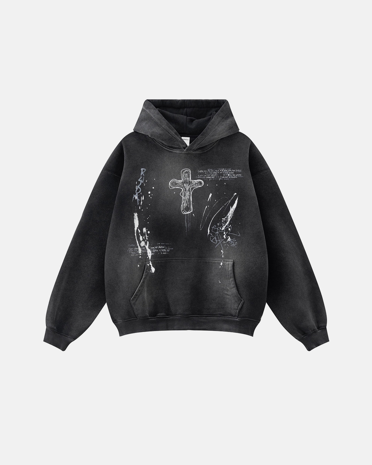 Graffiti Print Acid Washed Fleece Hoodies | Inflation Streetwear