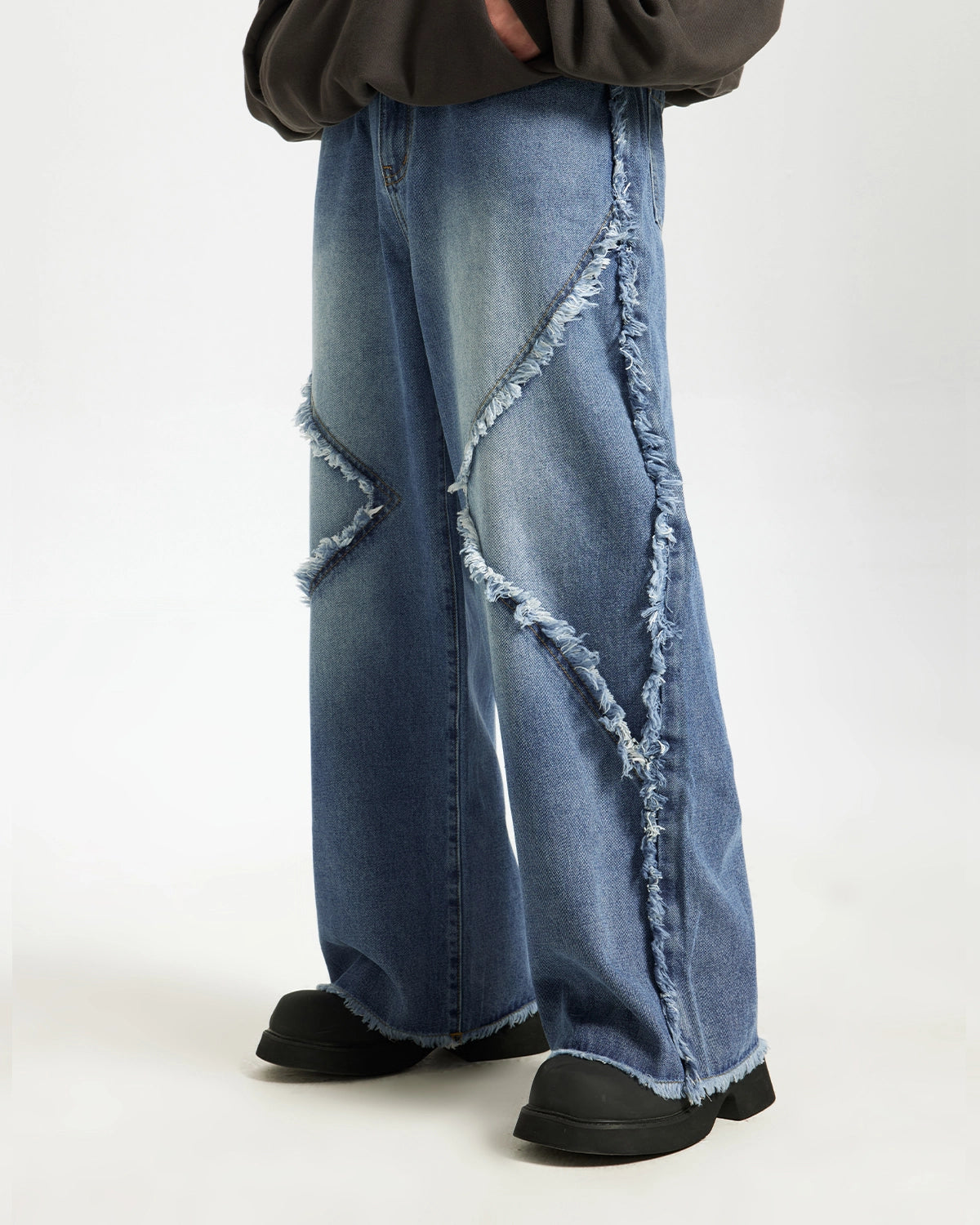 Blue Frayed Acid Wash Pants | Inflation Streetwear