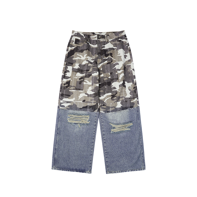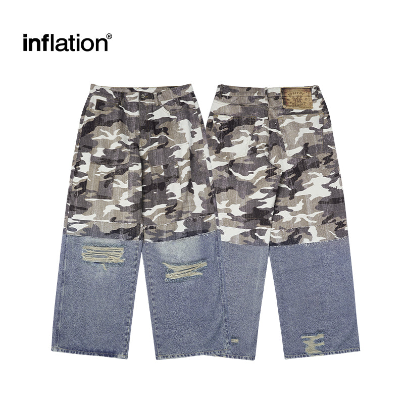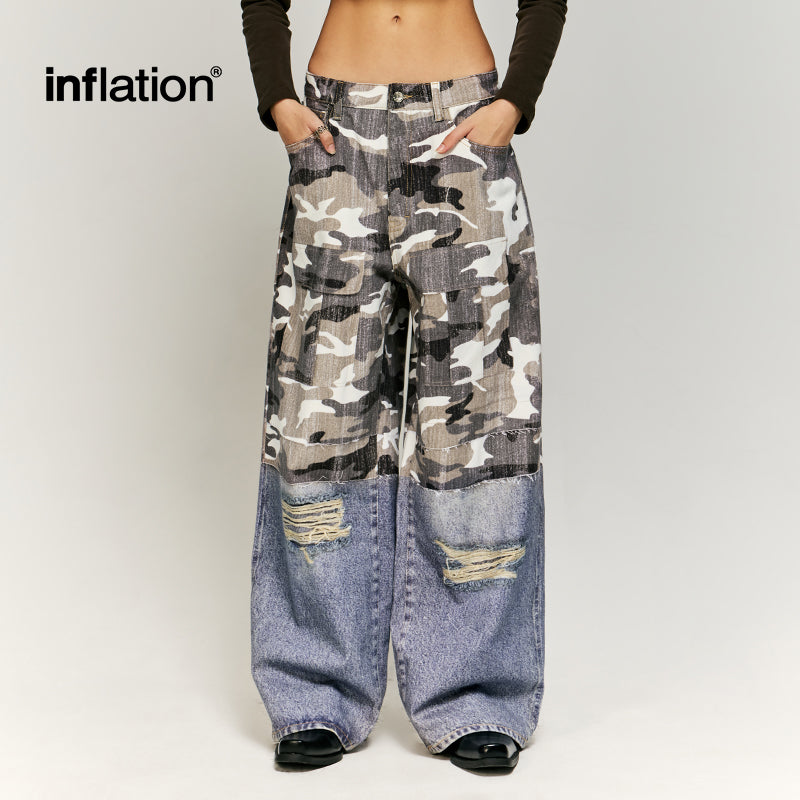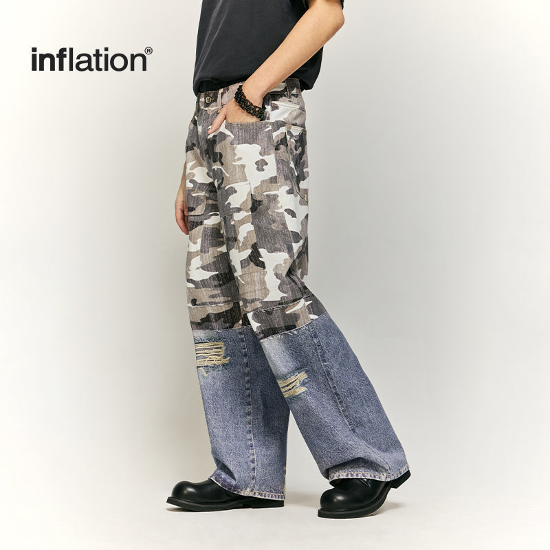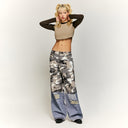 Patchwork Effect Print Baggy Jeans | Inflation Streetwear